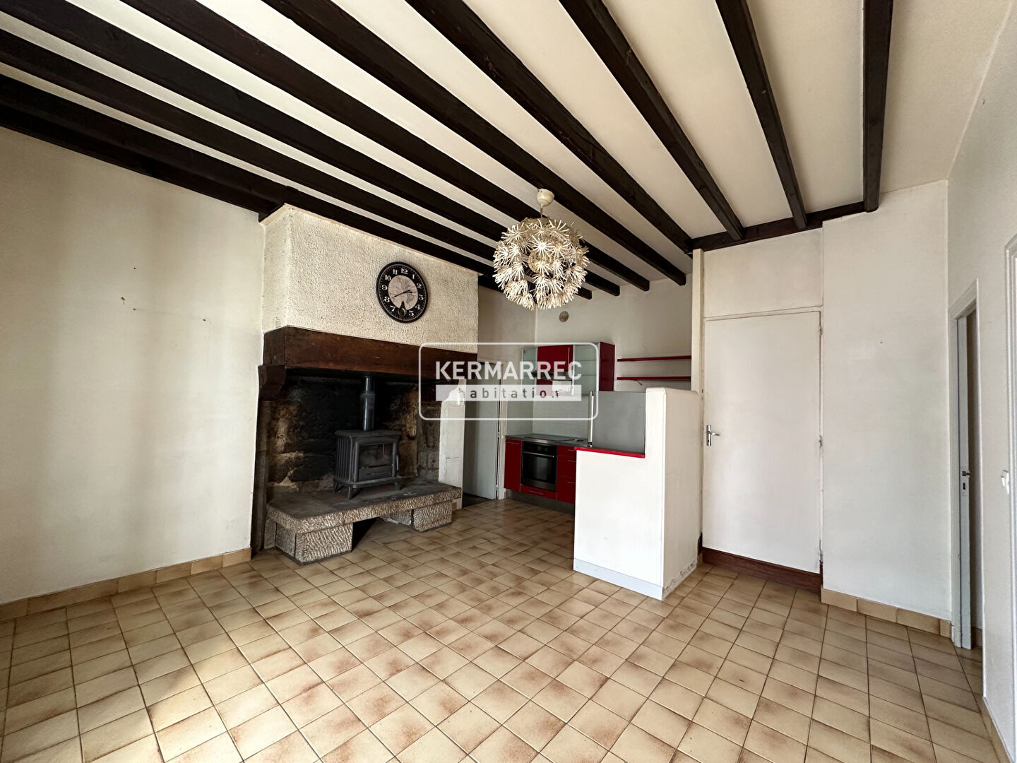 Au rez de chaussée, elle se compose d'une pièce de vie de plus de 30m² exposée sud, un wc une arrière cuisine et un garage (soit 25m² supplémentaires). Et à l'étage , 3 chambres, une salle de bain et un wc.