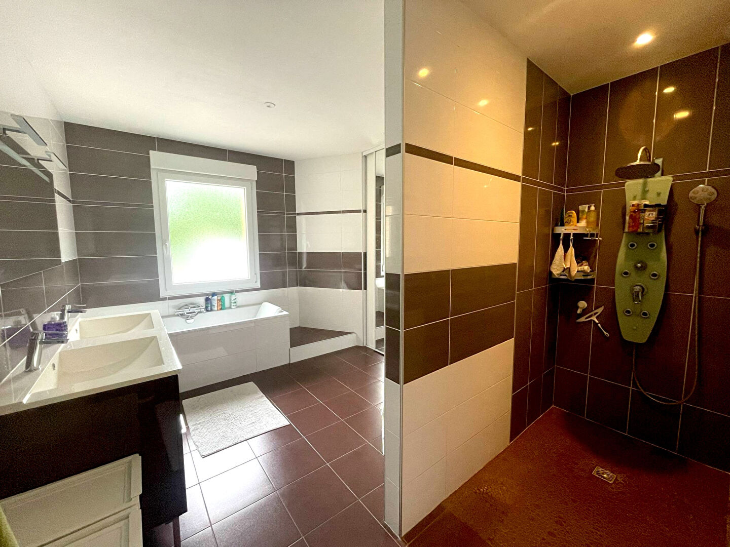 Un dégagement desservant quatre chambres avec parquet et placard, un cellier, une salle de bain, ainsi qu'un WC séparé.
