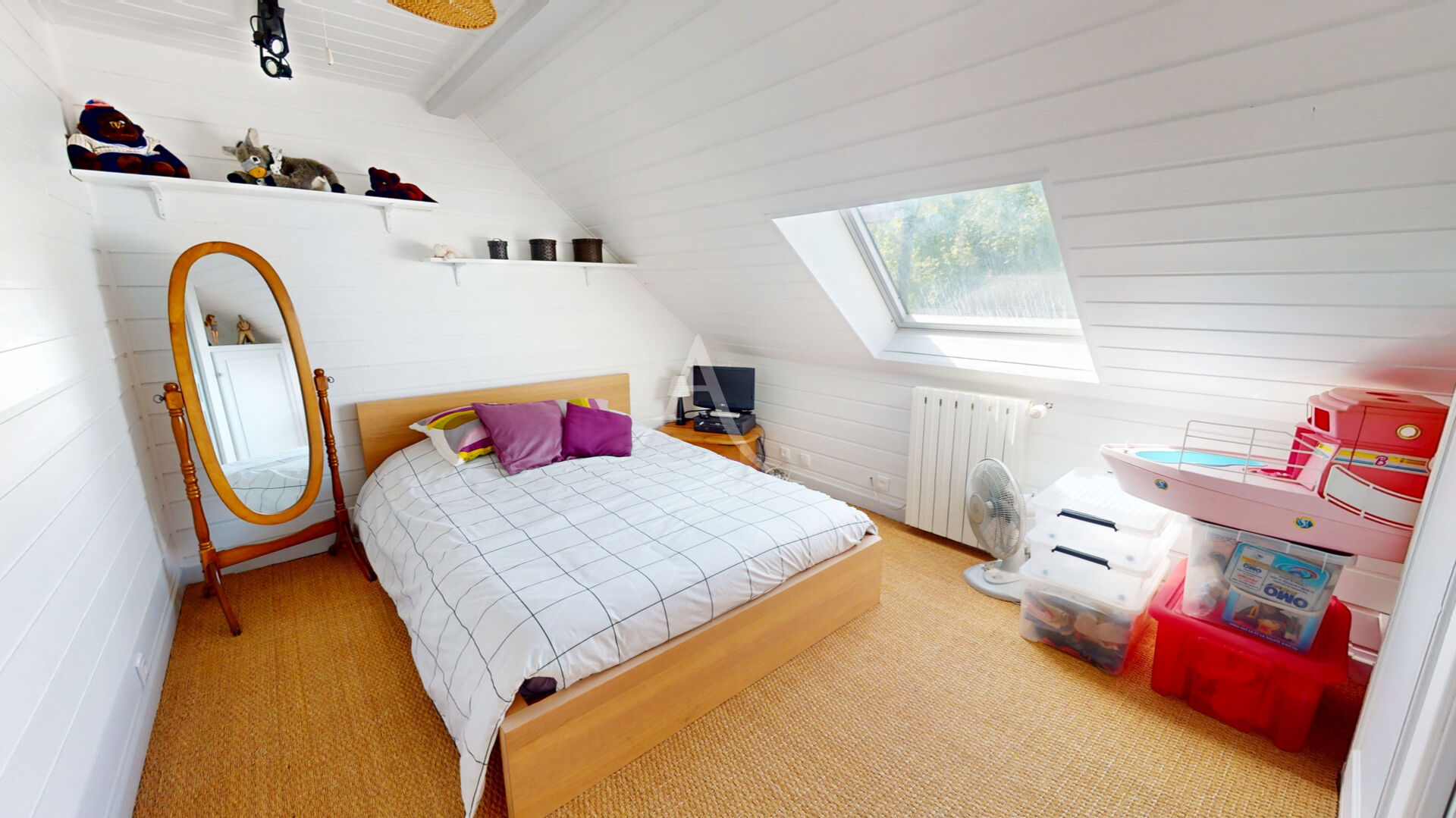 Édifiée sur une parcelle de 376 m², elle se compose au rez-de-chaussée d'une cuisine dinatoire conviviale, d'un séjour lumineux avec cheminée donnant directement accès à une agréable terrasse et à un jardin arboré, d'une salle d'eau avec double vasque et wc ainsi que d'un bureau avec rangements.