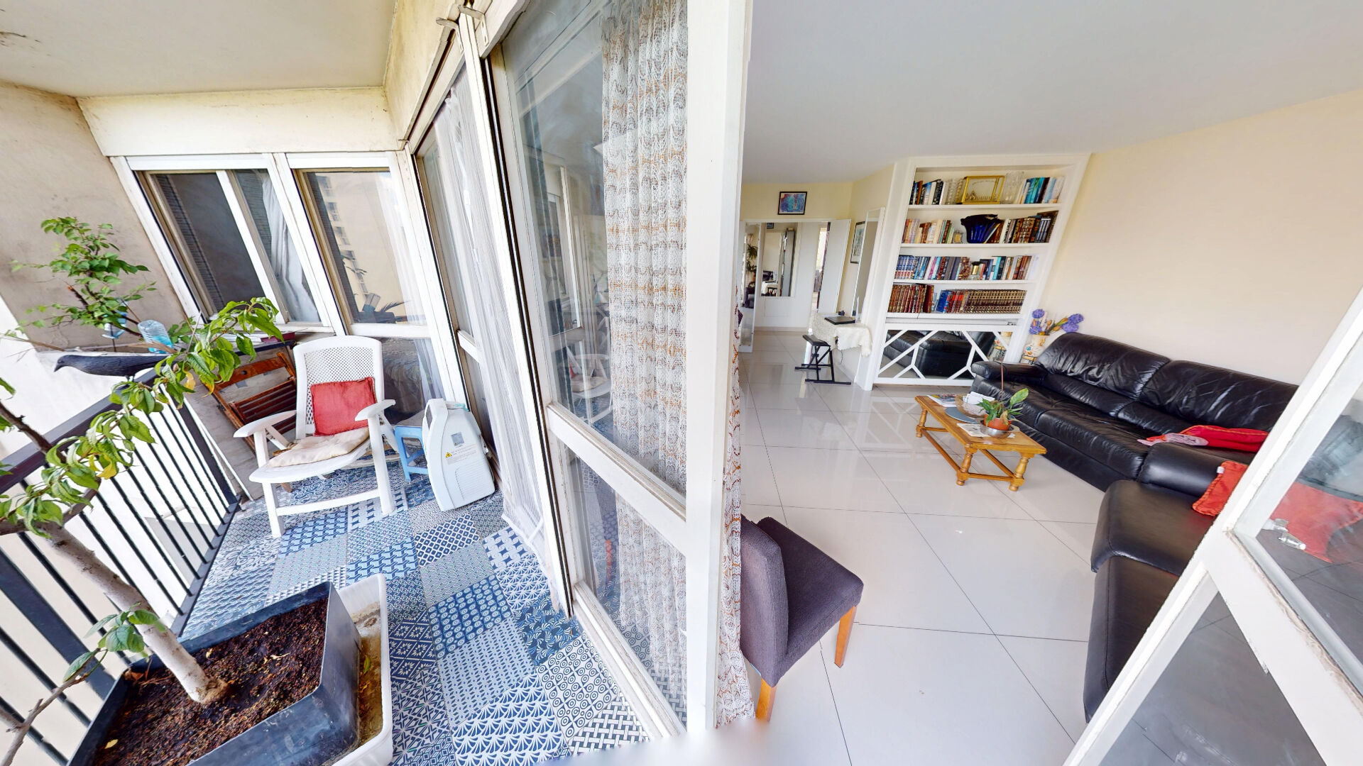 Le séjour de 23,5 m², lumineux grâce à ses portes-fenêtres exposées Ouest/Nord-Ouest, s'ouvre sur un balcon ensoleillé avec une belle vue dégagée. Idéal pour se détendre ou partager un repas en plein air.