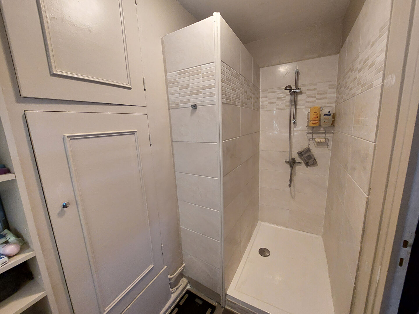 entrée, cuisine aménagée, séjour/salon avec loggia, placards, 2 chambres, salle de douche, WC, cave.