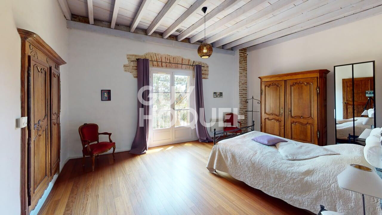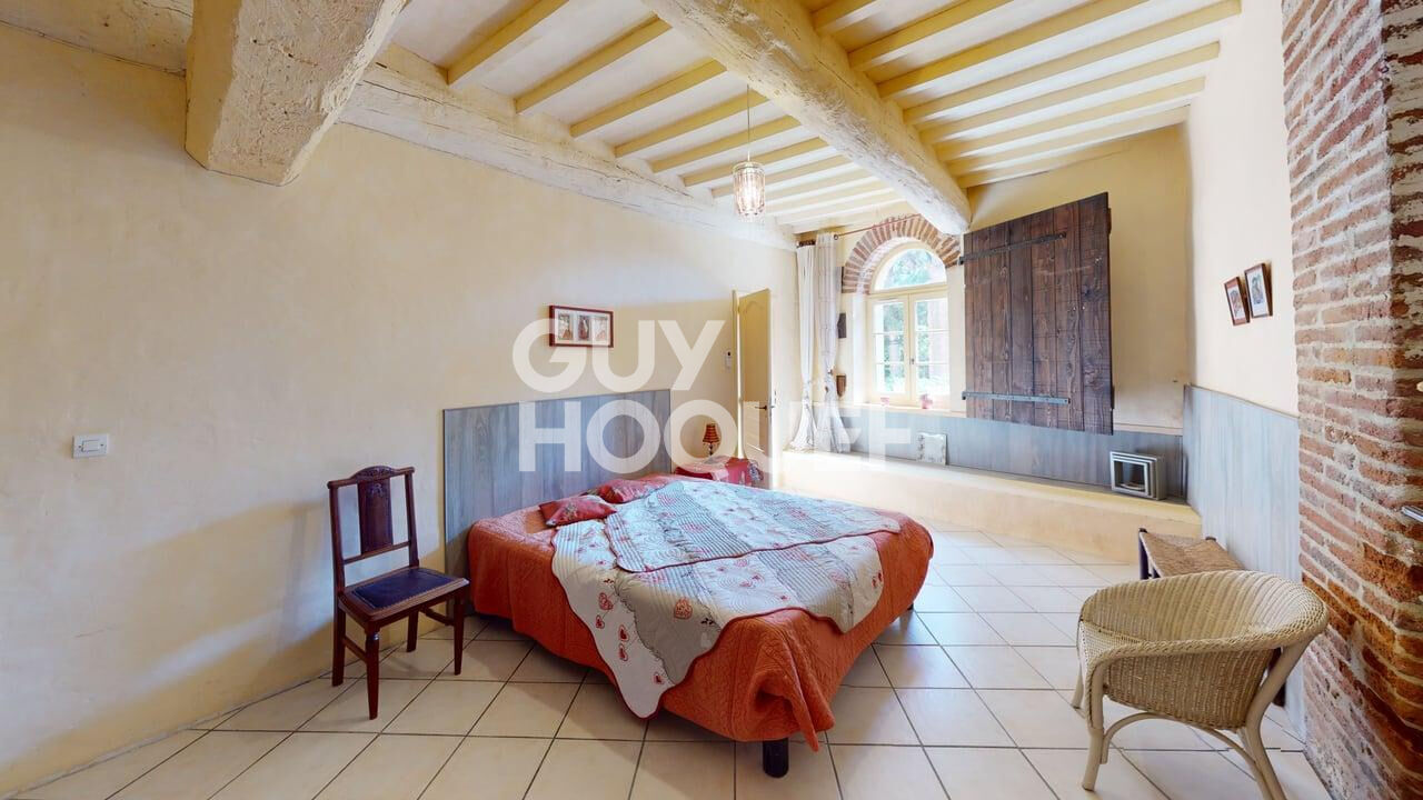 La propriété offre 5 chambres spacieuses, un bureau de 32 m², un grenier de 55 m², une maison secondaire indépendante, un garage, un atelier et une piscine sur plus de 3800 m² de terrain arboré.