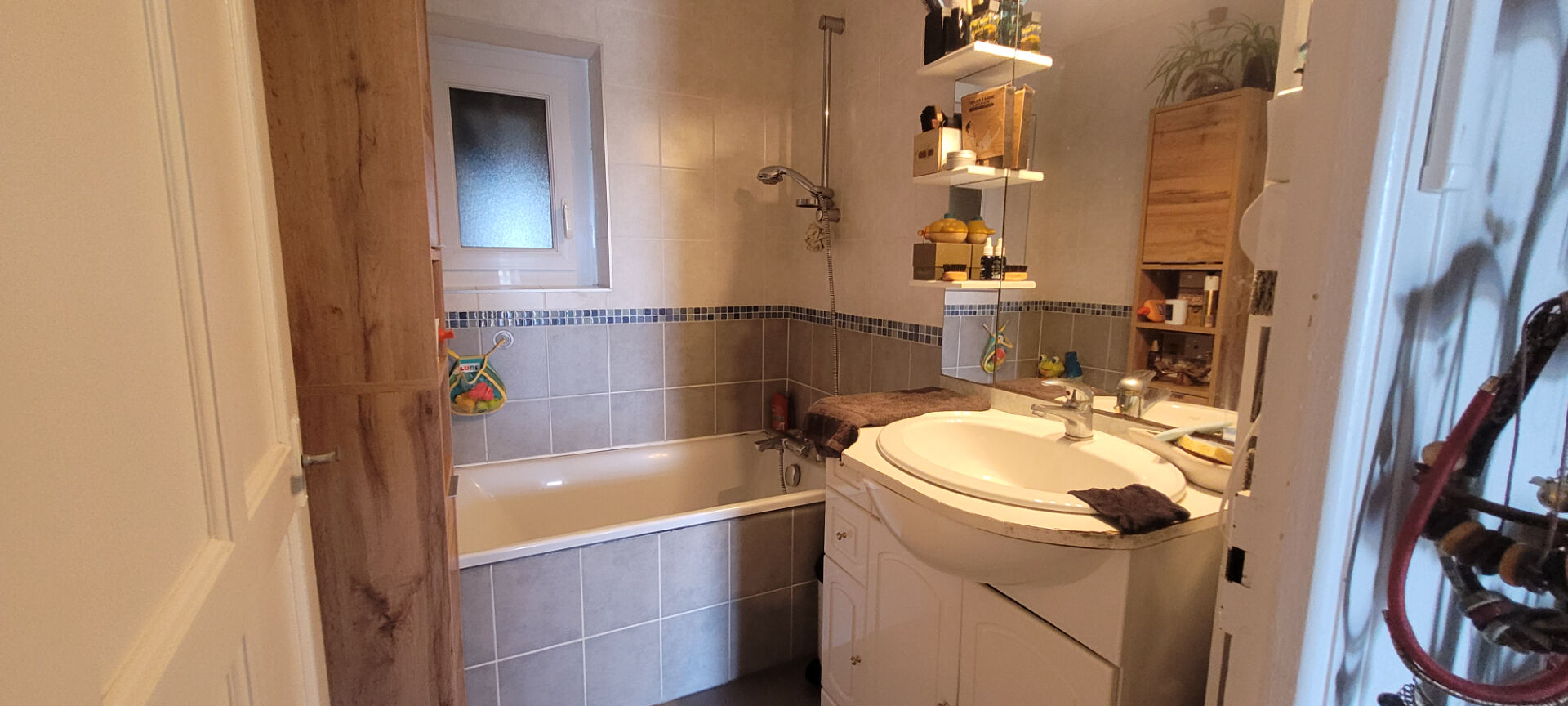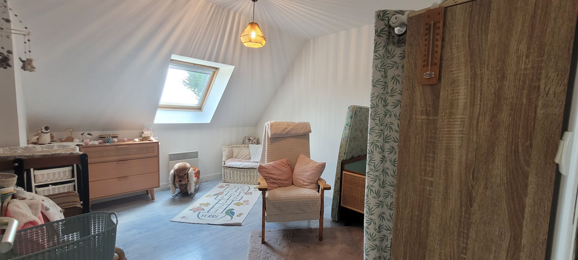 A l'étage : un dégagement dessert deux chambres , une salle d'eau un WC, un grenier.