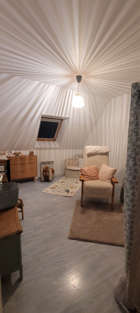 Cette maison comprend au R CH : séjour cuisine 35m2 avec cheminée , deux chambres , salle de bains