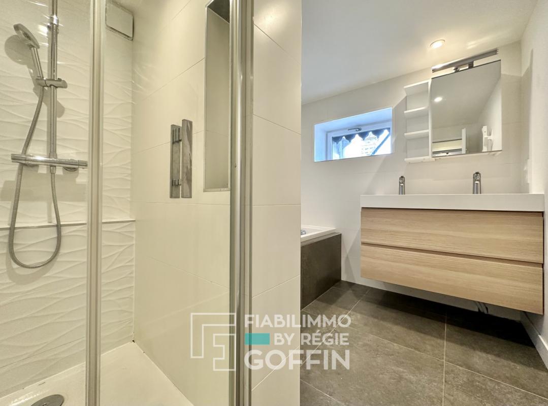 - d'une salle de bains de 5m2 avec douche et baignoire et WC séparés.