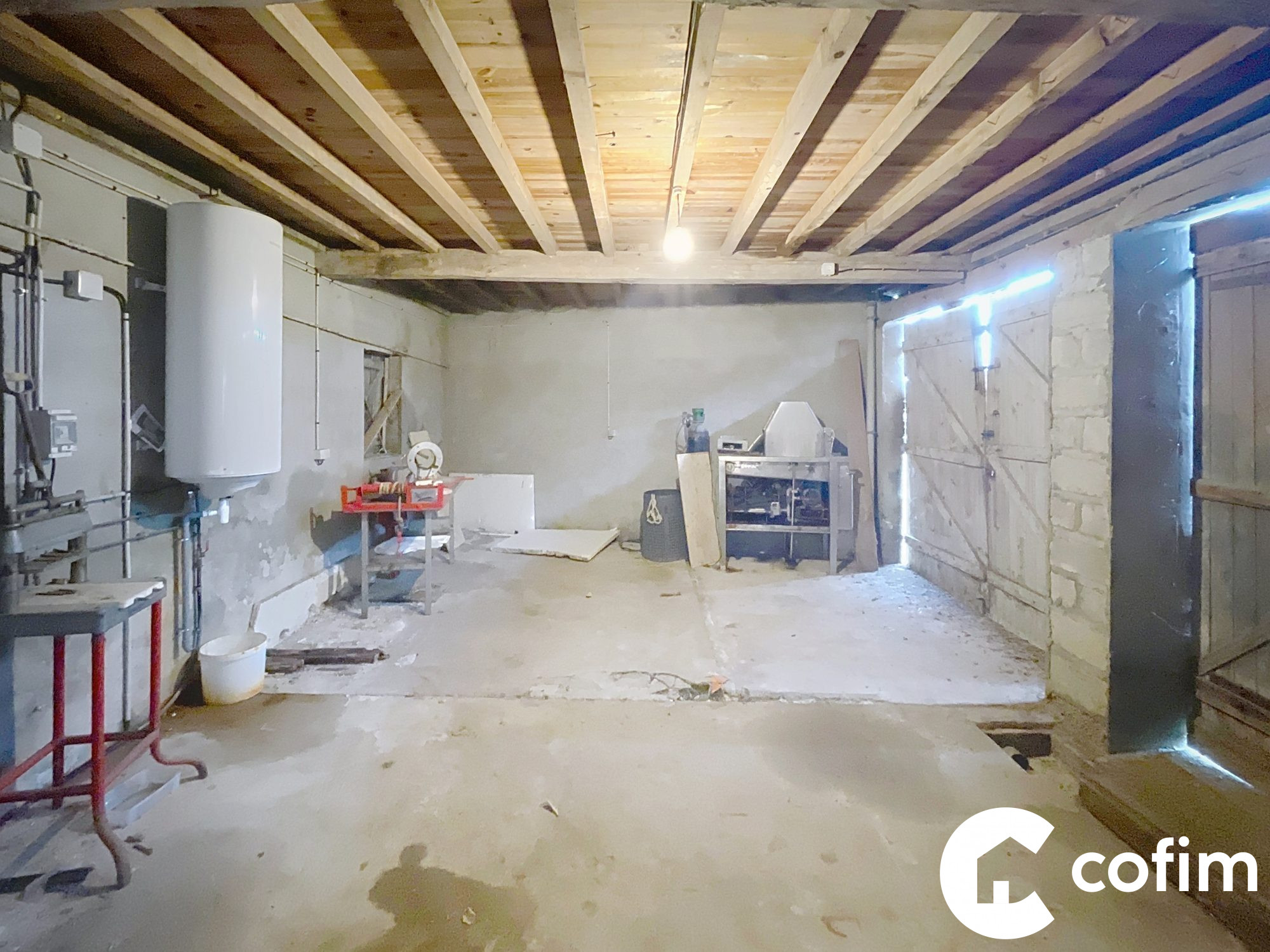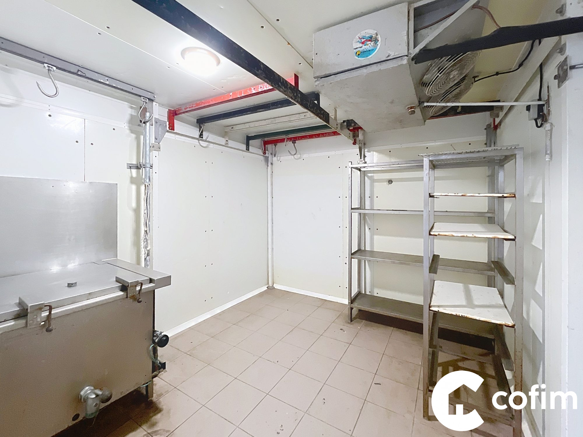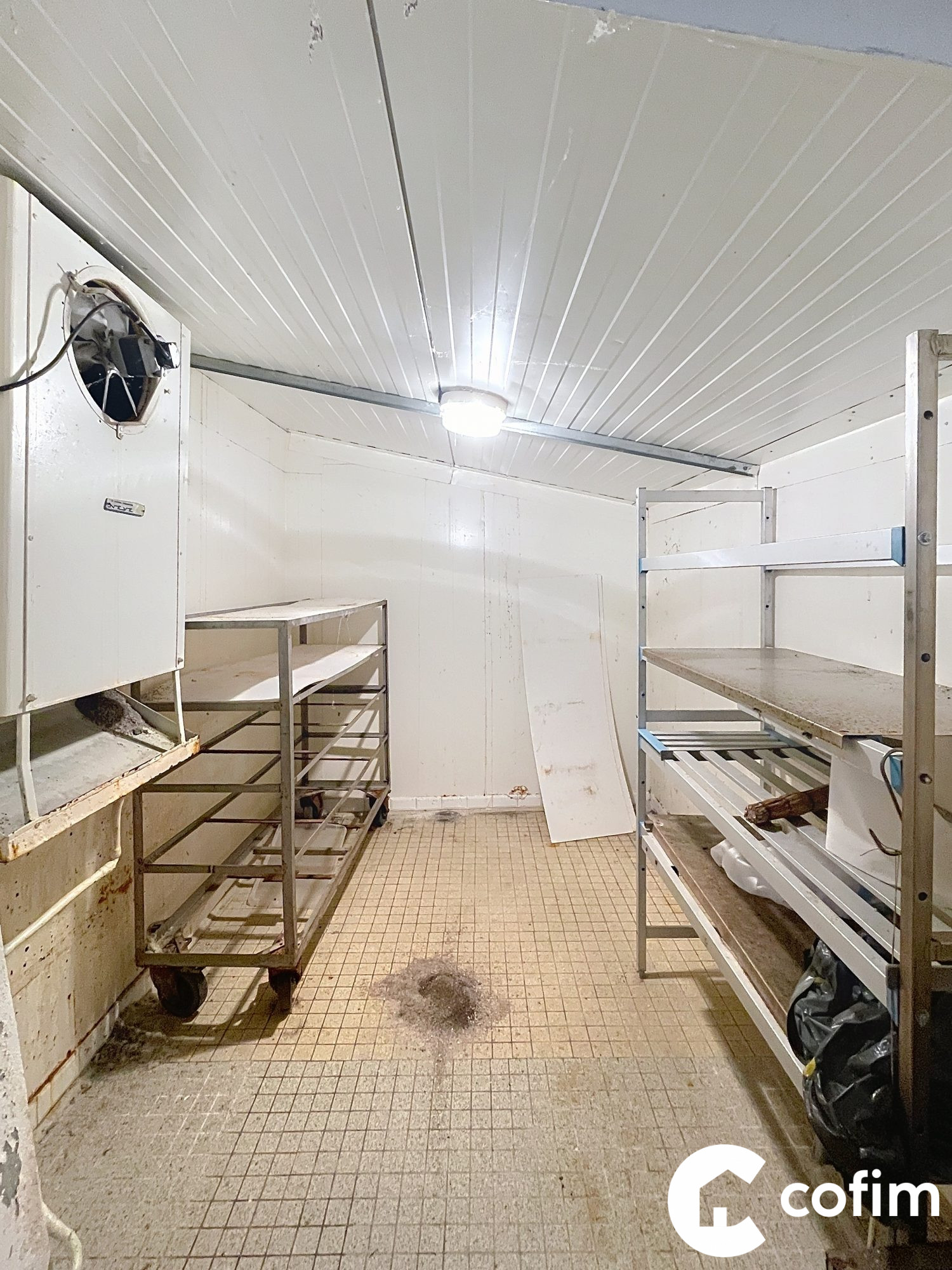 Entrepôt à viabiliser composé d'une partie hangar (82 m²), d'un double garage (31 m²) et une partie aménagée en chambres froides d'environ 75 m².