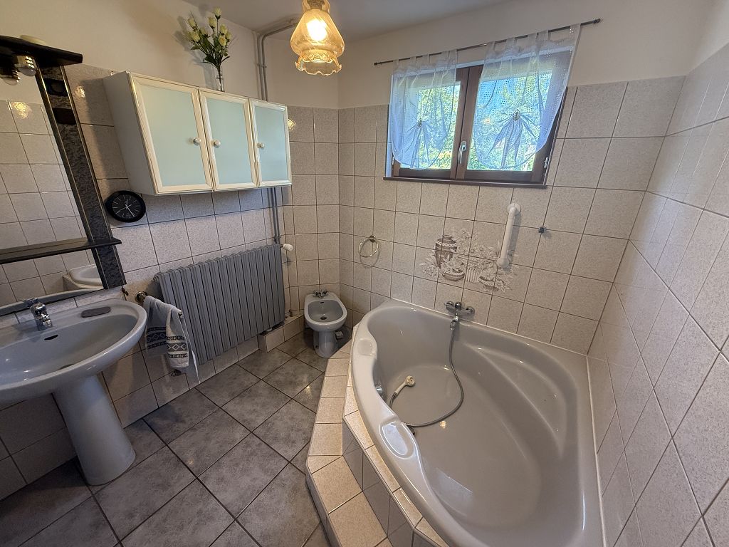-rez-de-chaussée : entrée sur buanderie/chaufferie, couloir, WC, salle de bain avec baignoire, cuisine, salon/séjour avec accès véranda et petite terrasse.