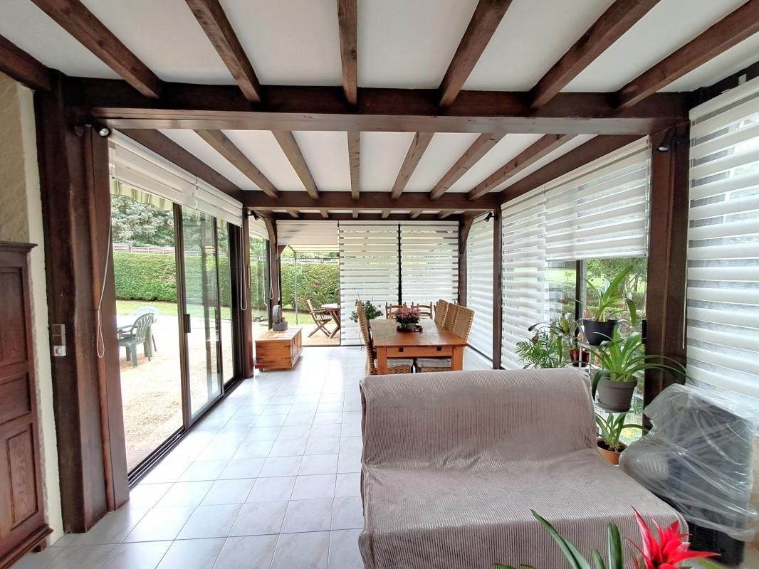 Cette maison confortable et en grande partie modernisée et composée comme suit: salle à manger-cuisine ouverte (33m²), séjour véranda avec insert (36m²), quatre chambres (entre 9m² et 13m²), deux salles d'eau et deux W.C..