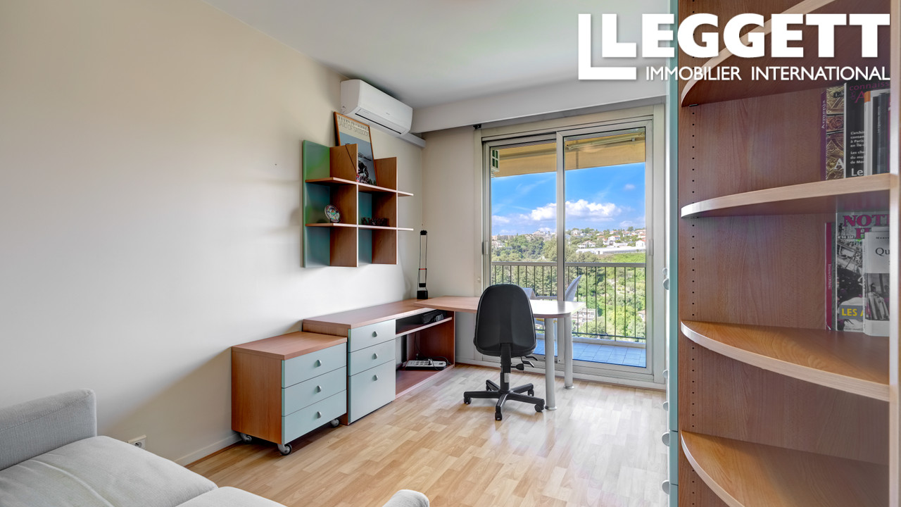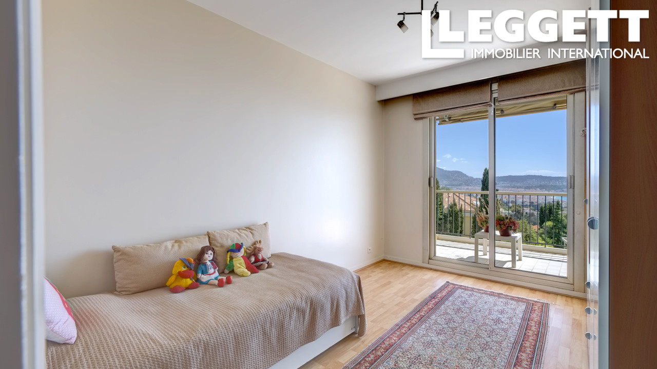 Situé dans une résidence sécurisée de standing avec piscine, tennis, supérette, salle de sport, forêt privée, l'appartement se compose de 3 chambres, cuisine séparée, séjour lumineux et 2 grandes terrasses (34 m² au total), l'une avec une vue imprenable sur la baie de Nice, l'autre côté montagne. Il bénéficie également d'un garage fermé en sous-sol, cave, et d'un local de rangement très pratique sur la terrasse arrière.