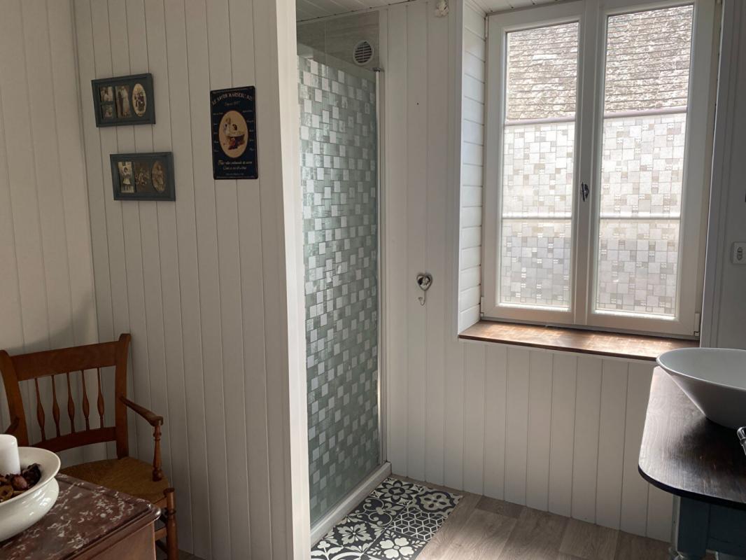 - une maison de maitre rénovée comprenant cuisine semi ouverte sur séjour , arrière cuisine, buanderie , wc et suite parentale avec douche et baignoire .A l'étage un palier de 16 m² desservant 3 belles chambres , salle d'eau, wc . Attenant une pièce de réception avec atelier , grenier aménageable .