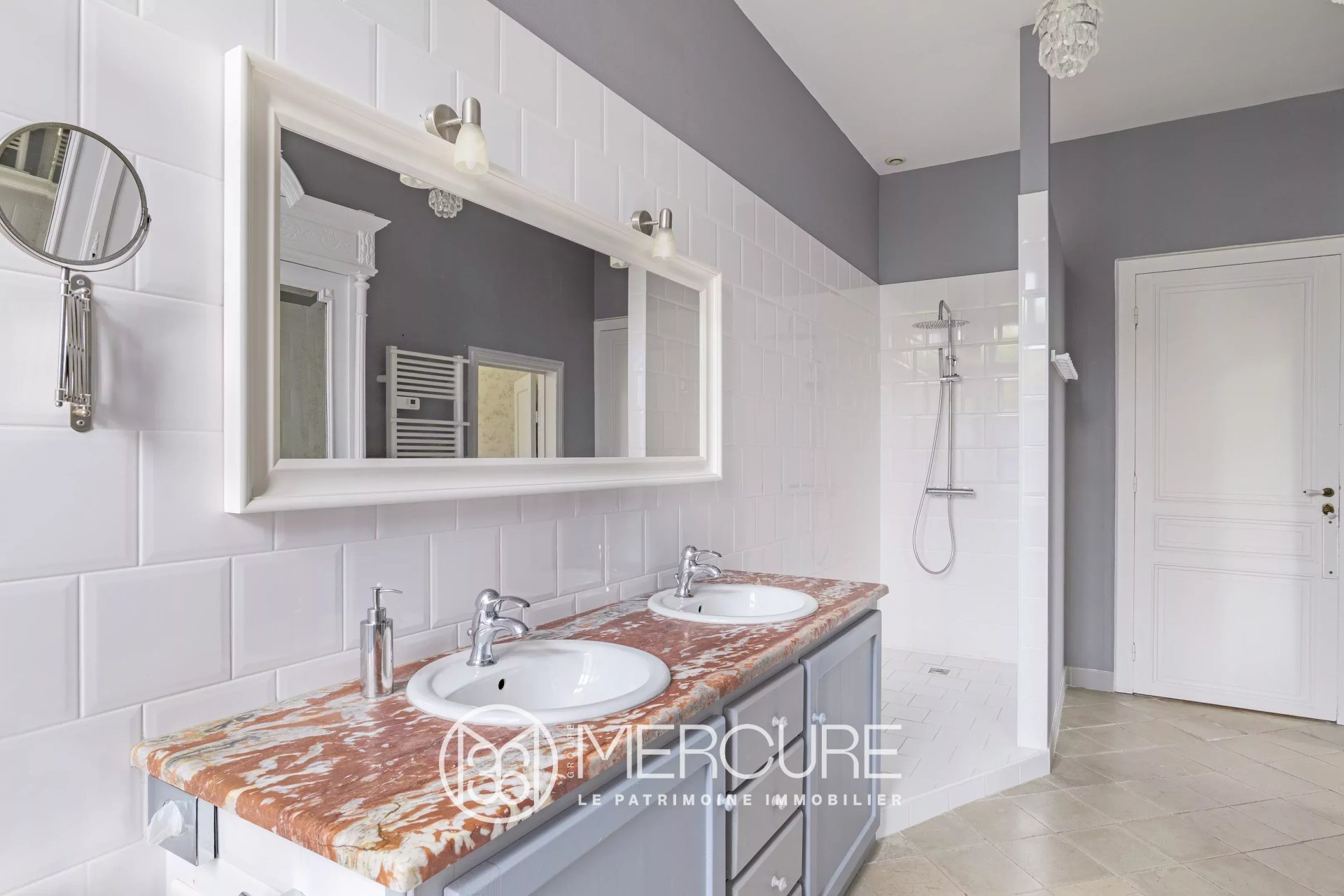 Elle dispose actuellement de 5 chambres et de 5 salles de bains, d'un grand salon de 42m2 et d'une belle cuisine/ salle a manger de 43m2.
