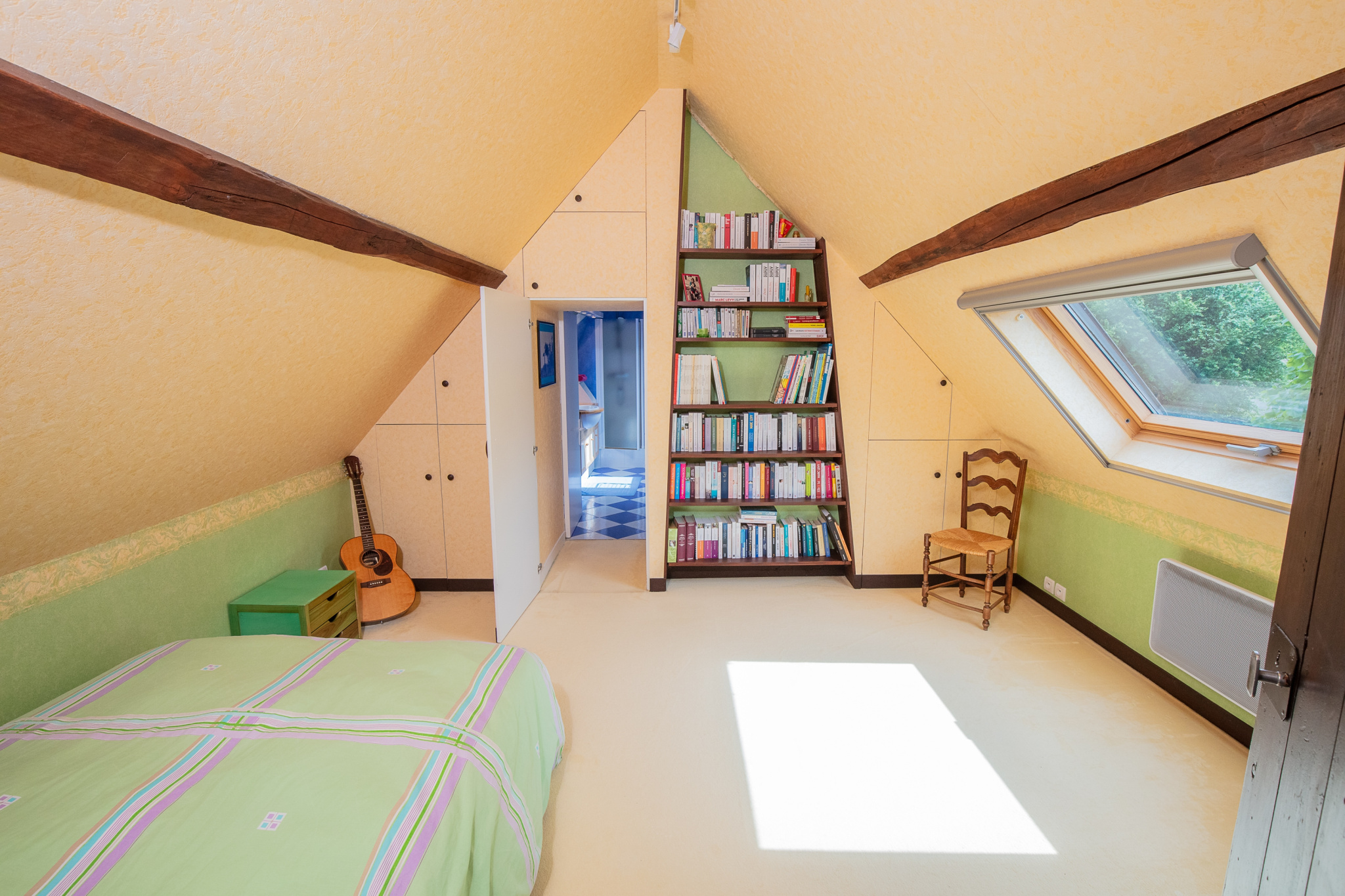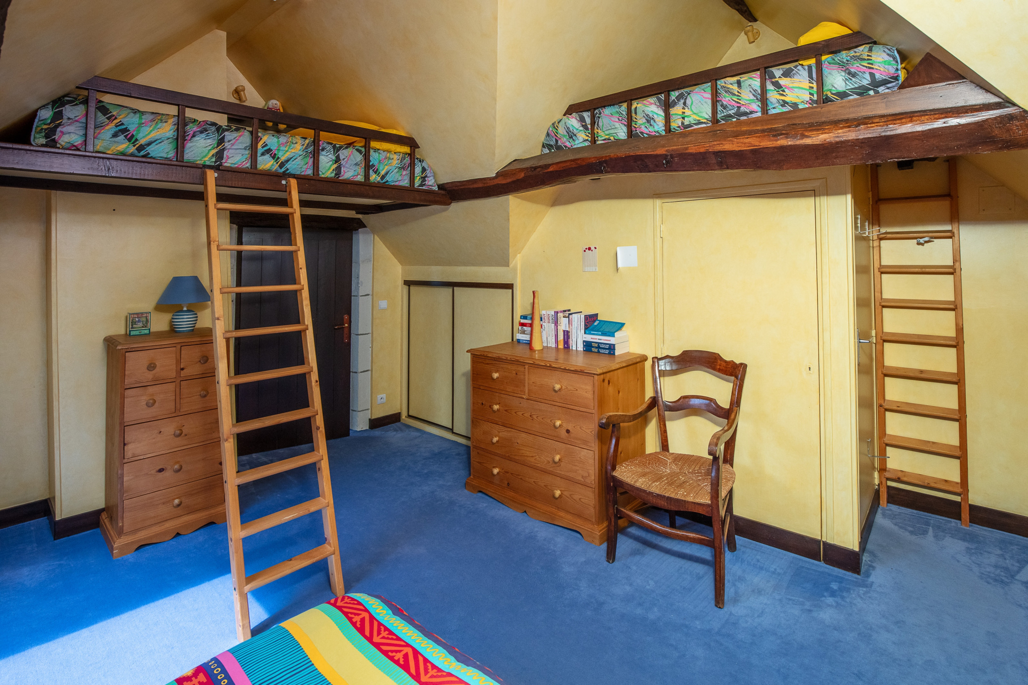 A l'étage, un palier spacieux (pouvant servir de chambre d'appoint) dessert d'un coté, une belle chambre, de l'autre une suite avec salle d'eau et WC