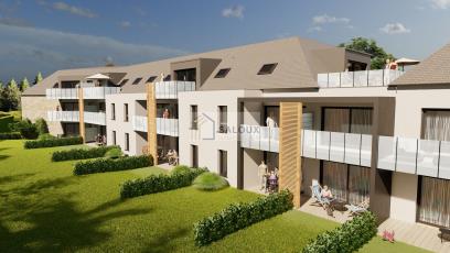 Idéalement situé à 10 mn des plages et à 20 mn de VANNES, très bel immeuble contemporain comprenant 29 appartements du T1 au T5 avec terrasse ou balcon et garage privatif.