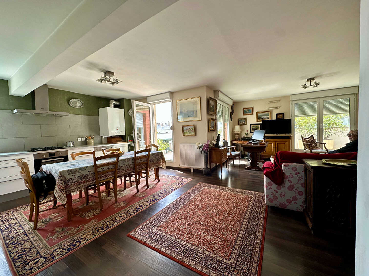 RARE, Entre République et Toison d'Or, bel appartement en DUPLEX avec Terrasse, Garage DOUBLE et cave, situé à proximité du Tram, comprenant un grand séjour-salon exposé Ouest sur terrasse, cuisine équipée exposée Sud et Ouest ouverte sur terrasse, une grande chambre, vaste salle de bains, WC et à l'étage deux chambres, salle de douche, WC