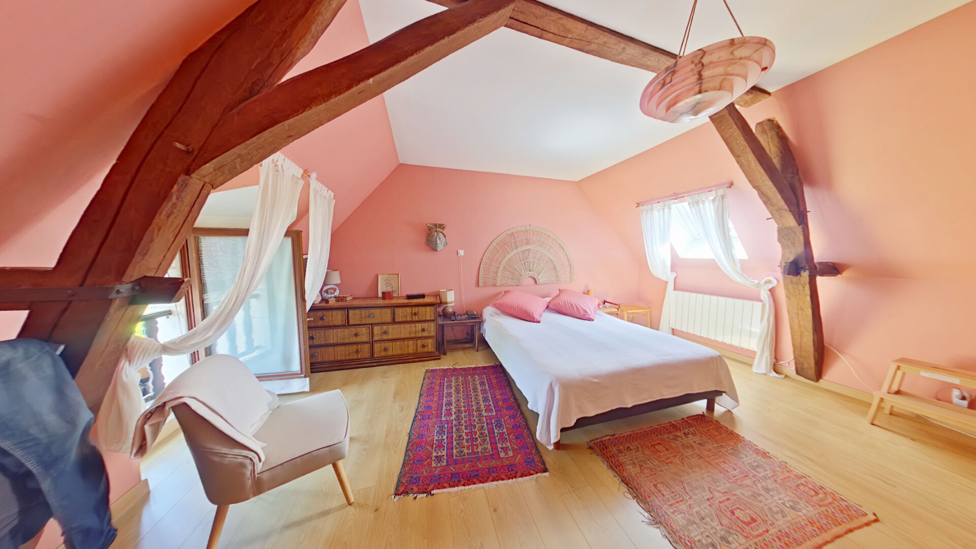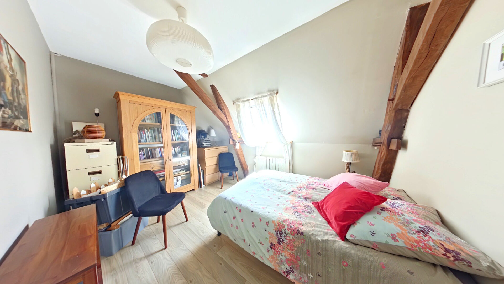 A l'étage, l'espace nuit comprend trois chambres lumineuses, un bureau idéal pour le télétravail ainsi qu'un second wc avec lave-mains.