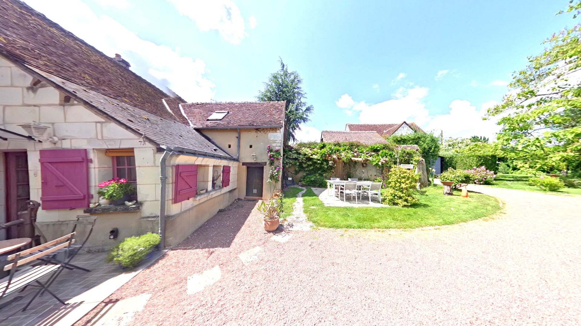 Les extérieurs ne sont pas en reste: une grande grange aménagée de 63 m² offre de nombreuses possibilités ( atelier, espace réception, salle de jeux), un garage couvert, une cour, et un jardin arboré entièrement clos sans aucun vis à vis avec un puits.