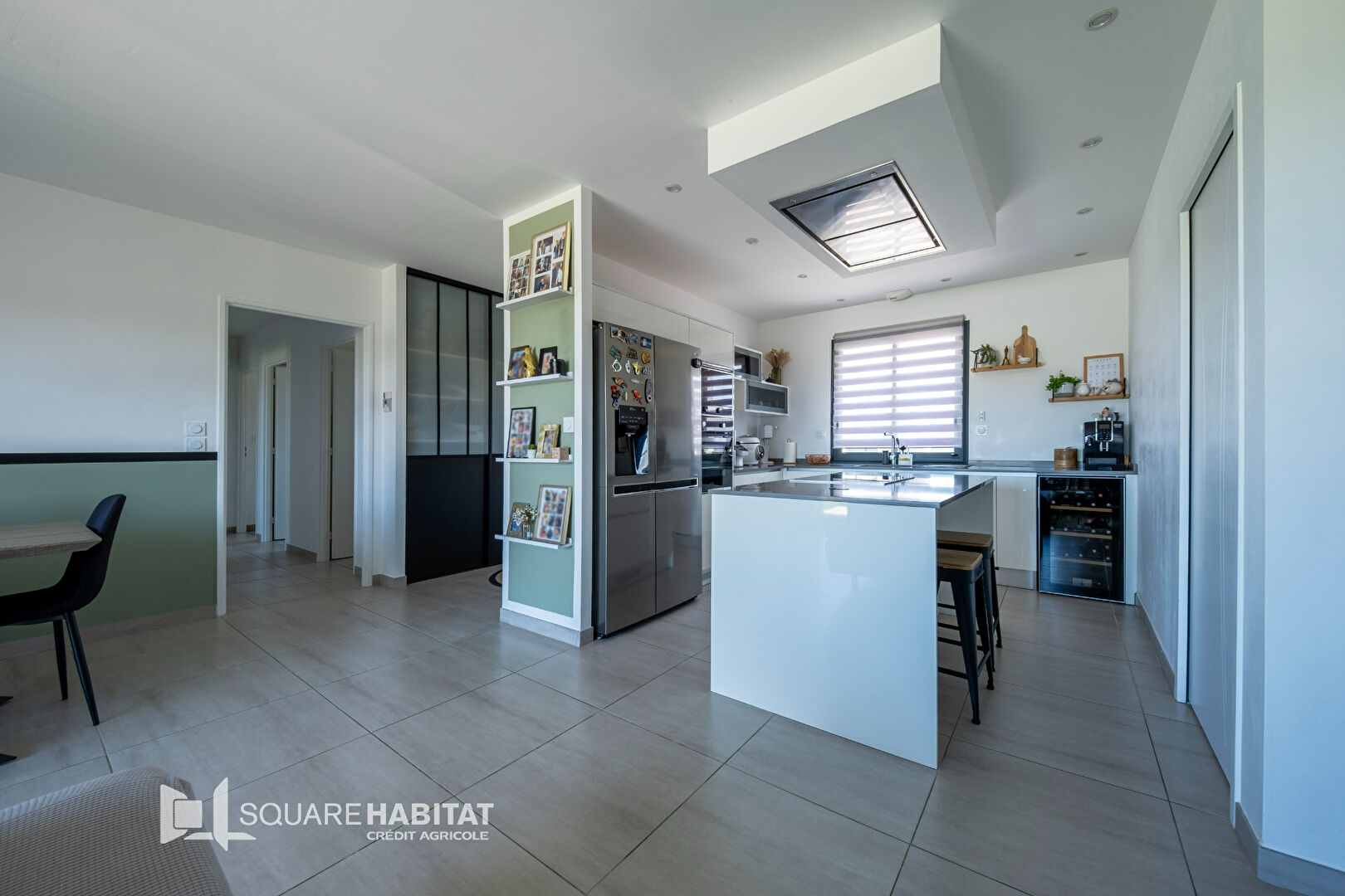 Coup de coeur assuré, vous entrez dans un salon très lumineux avec cuisine ouverte avec un cellier.