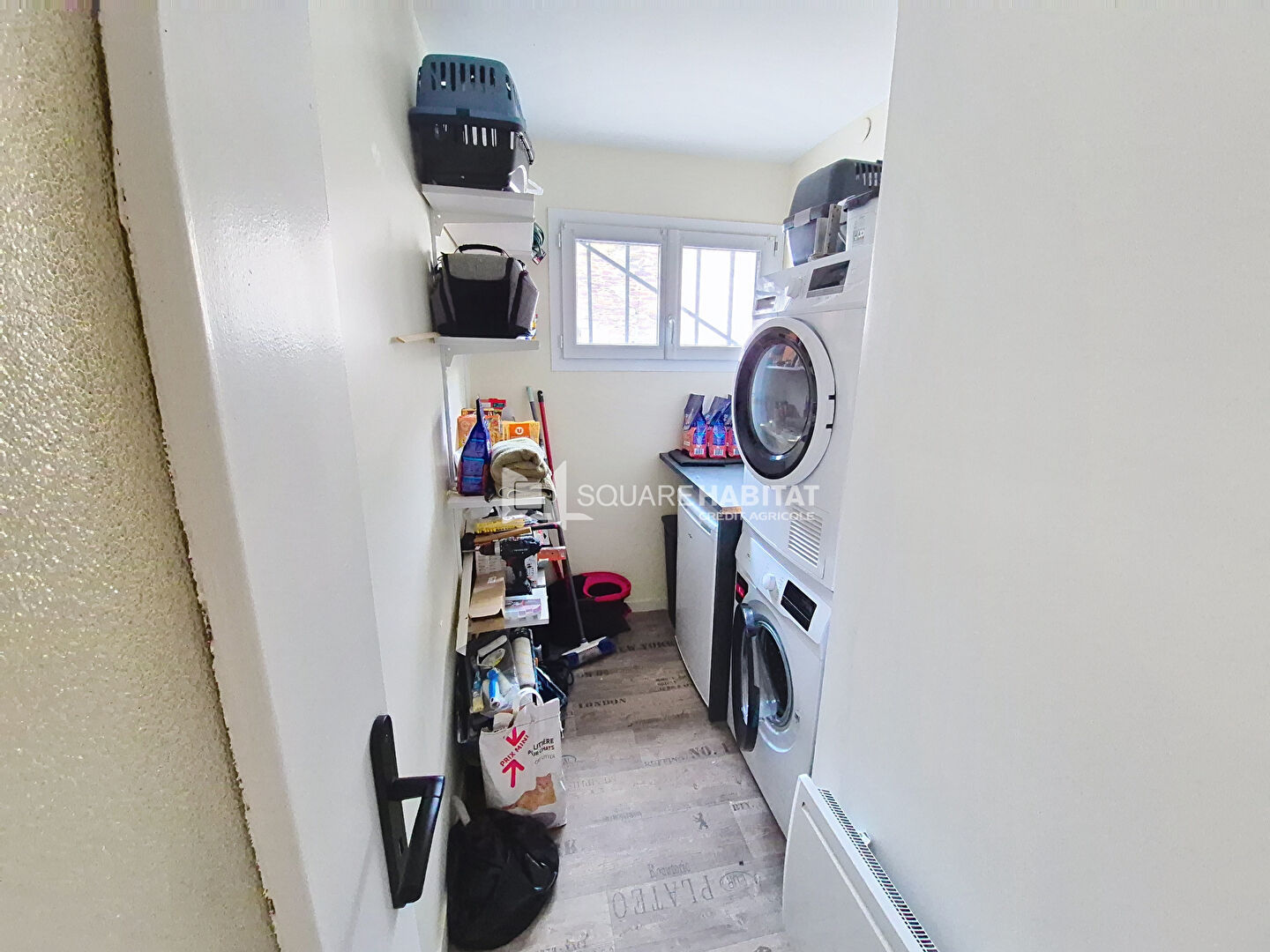 Profitez d'un salon-séjour ouvert sur la cuisine, de deux chambres spacieuses, d'une salle d'eau récente et d'une buanderie.