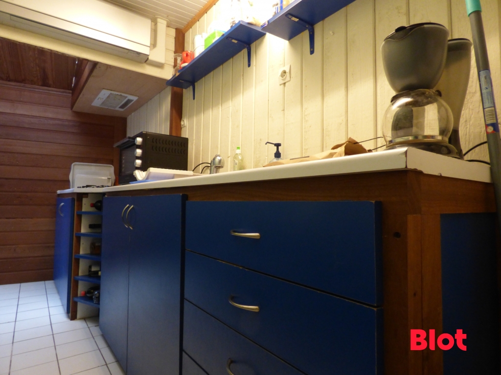- Rez-de-chaussée : un espace salon, une cuisine, une buanderie avec WC.