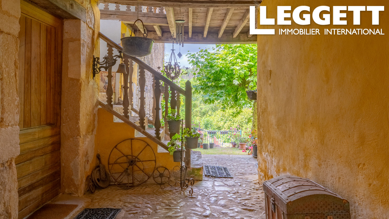Une fois la porte sur la ruelle du village passée, le charme de l'allée couverte vous saisira, celle-ci donne sur la porte de la grande maison composée d'une vaste entrée, un WC, un salon avec cheminée et une grande cuisine / salle à manger.