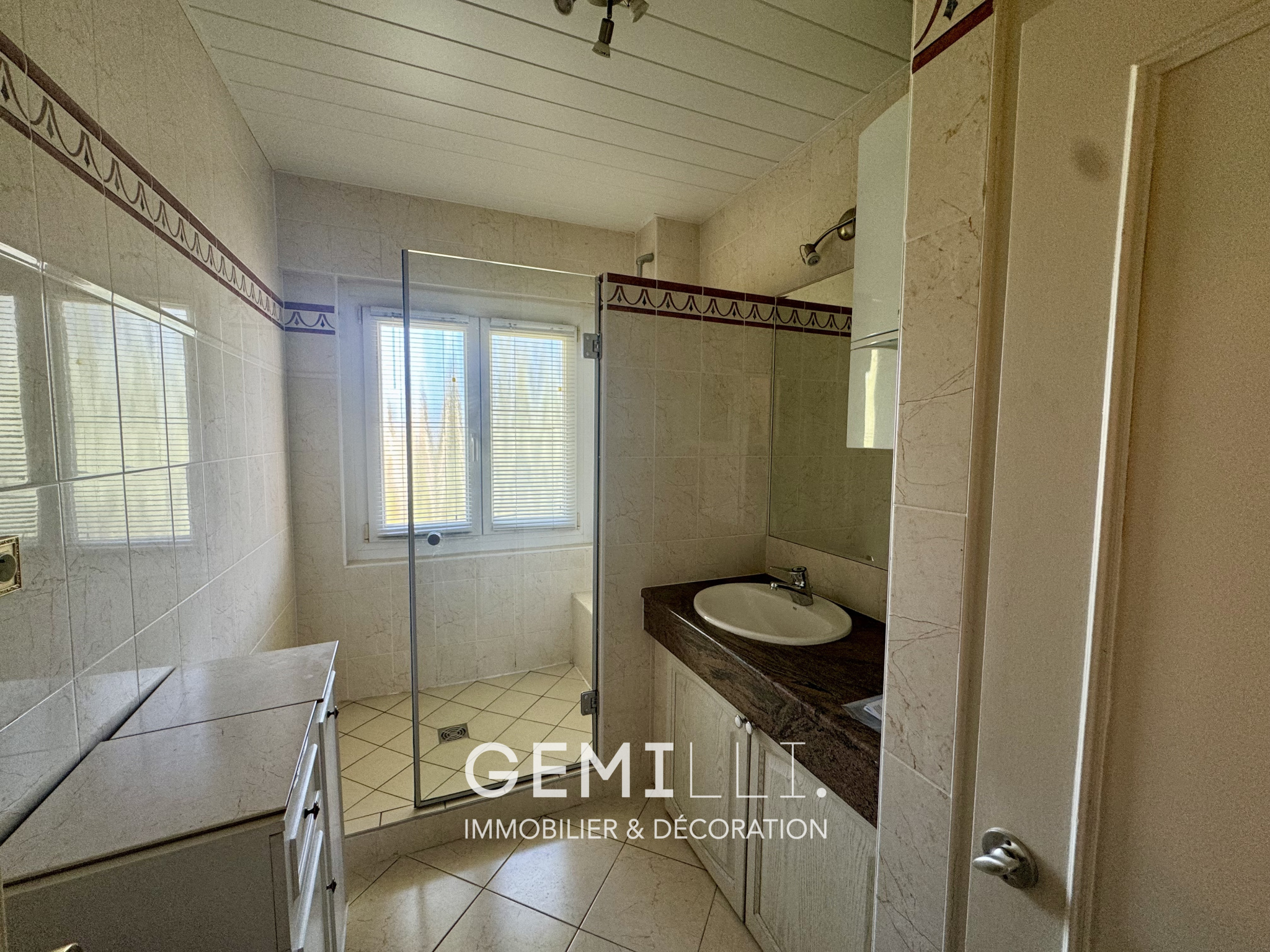 L'appartement se compose au premier niveau d'une entrée avec placard, d'un WC séparé, d'un débarras, d'une cuisine indépendante et fonctionnelle, ainsi que d'un vaste séjour de 33 m2 ouvert sur une agréable terrasse. Deux chambres confortables et une salle d'eau récemment modernisée complètent ce niveau. À l'étage, un espace mansardé utilisé comme bureau.