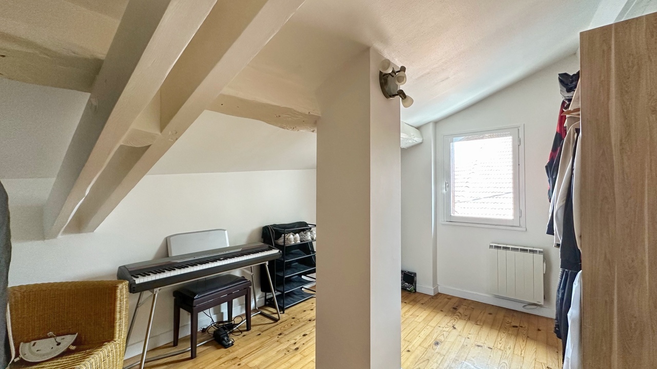 A l’étage, un palier dessert 2 chambres de 15,71 m² et 9,52 m² dont l’une avec un espace de stockage et une SDB avec WC.