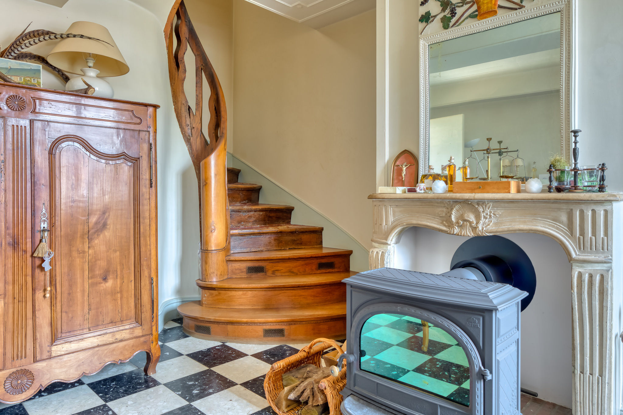 1o) Maison principale d'environ 217 m2 habitables, aux vastes et lumineux volumes, élevée sur cave partielle, comprenant : vestibule d'entrée faisant office de petit salon avec cheminée et poêle à bois, très beau séjour/salon baigné de lumière traversante avec cheminée, boiseries et placards, cuisine lumineuse d'environ 30 m2, WC. Au premier étage, vous trouverez un beau palier/couloir qui dessert quatre grandes chambres avec cheminée en marbre et parquet en chevrons, ainsi qu'une salle de bains avec WC. Au deuxième et dernier étage se trouvent deux chambres, une salle de bains avec WC, bureaux/rangements et un superbe grenier aménageable. Chauffage central au fioul, toiture en parfait état en ardoises naturelles, portail électrique, rejointoiement complet des façades réalisé récemment .