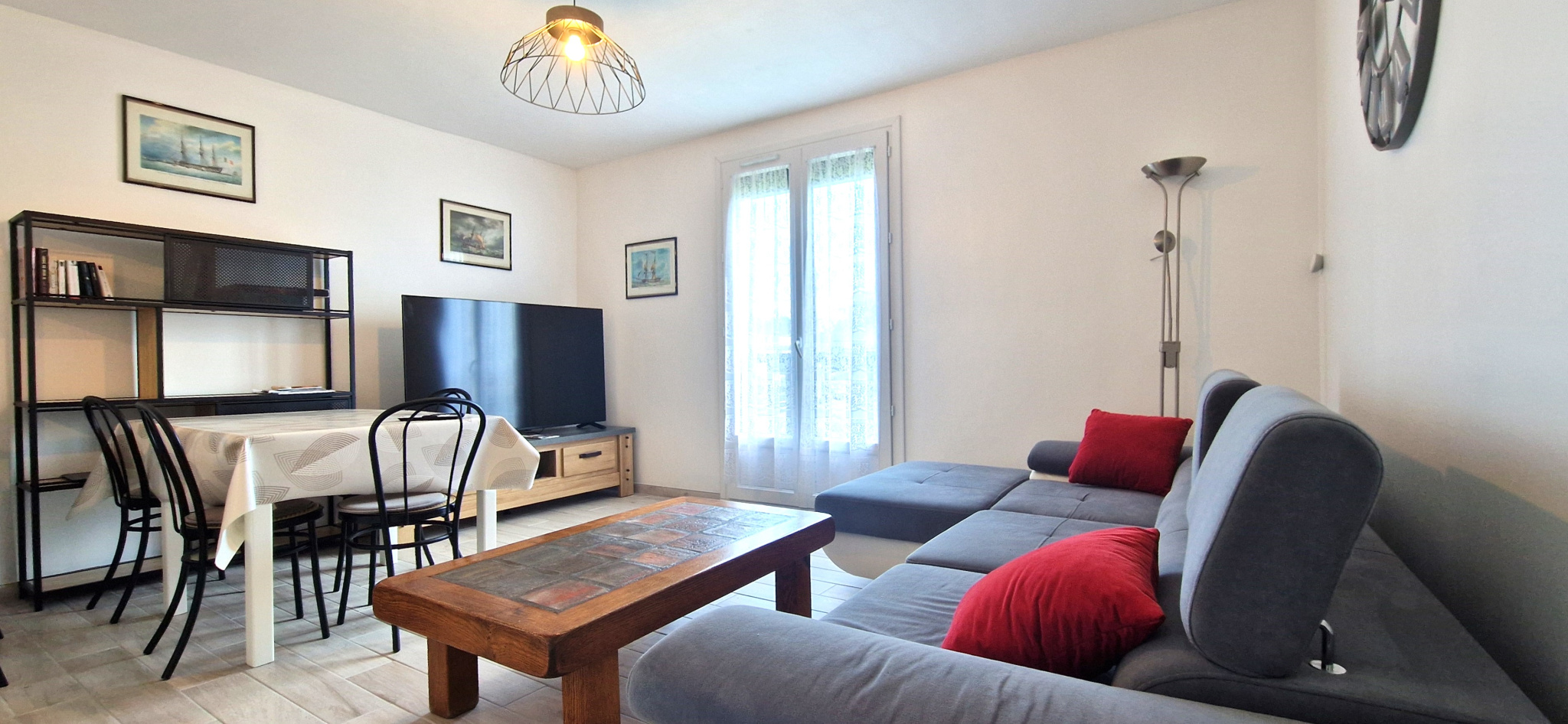 EN EXCLUSIVITE ! (Visite virtuelle disponible sur demande !) A Grandcamp-Maisy, au 2ème étage d'une résidence sécurisée située à 500m du port, appartement entièrement refait comprenant 3 pièces principales avec : Entrée avec rangements, séjour-salle à manger avec cuisine ouverte aménagée et équipée, 2 chambres, salle d'eau (avec branchement machine à laver), WC. Vendu meublé ! Grand parking privatif dans la copropriété. Résidence sécurisée disposant d'un beau parc arboré parfaitement entretenu avec terrain de tennis, terrain de pétanque, barbecue, balançoire.