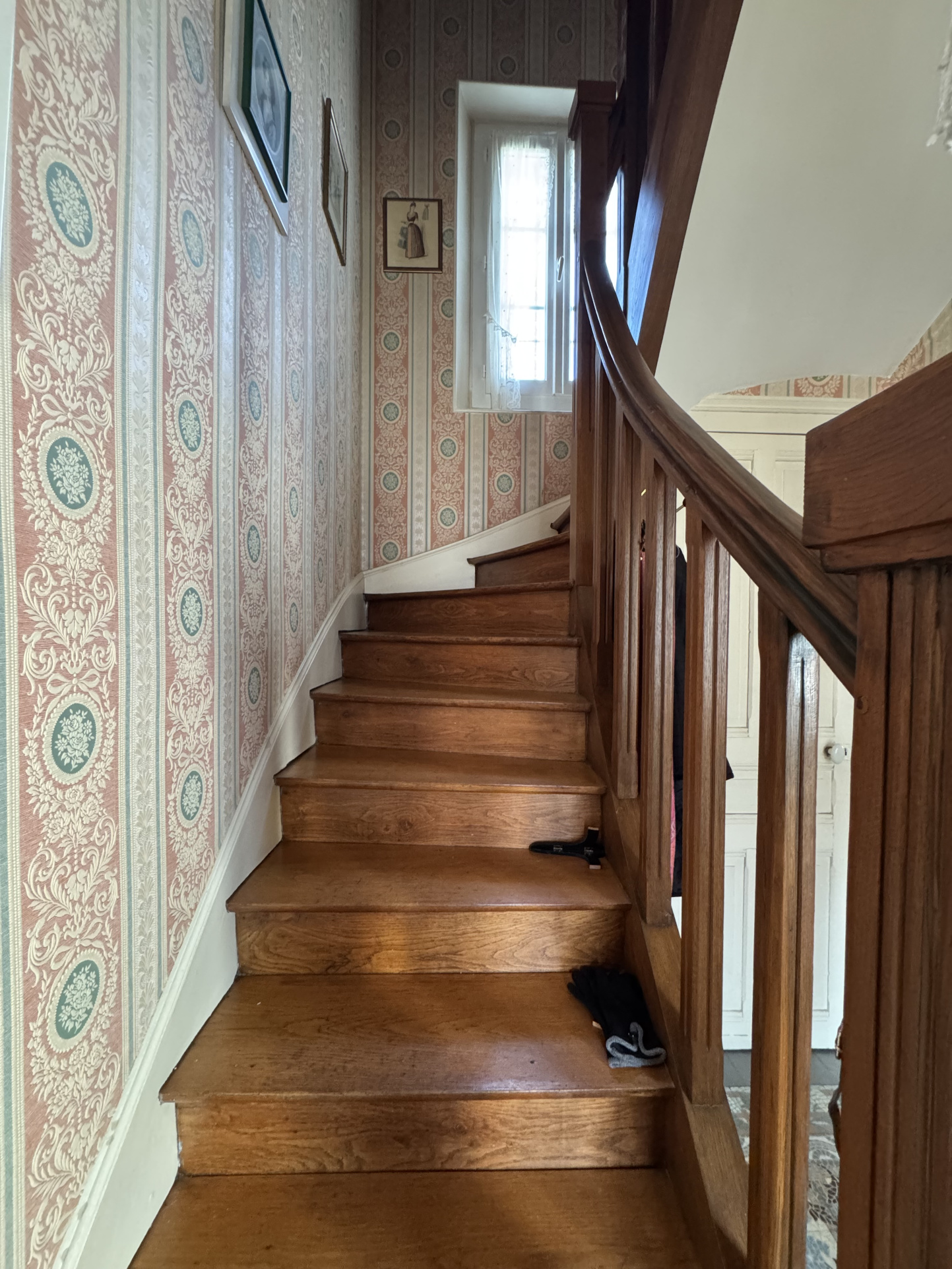 A l'étage : un palier avec penderie, 3 chambres aux beaux volume dont 1 avec point d'eau (12m2, 14m2, 18m2), la possibiliée d'y mettre un WC.