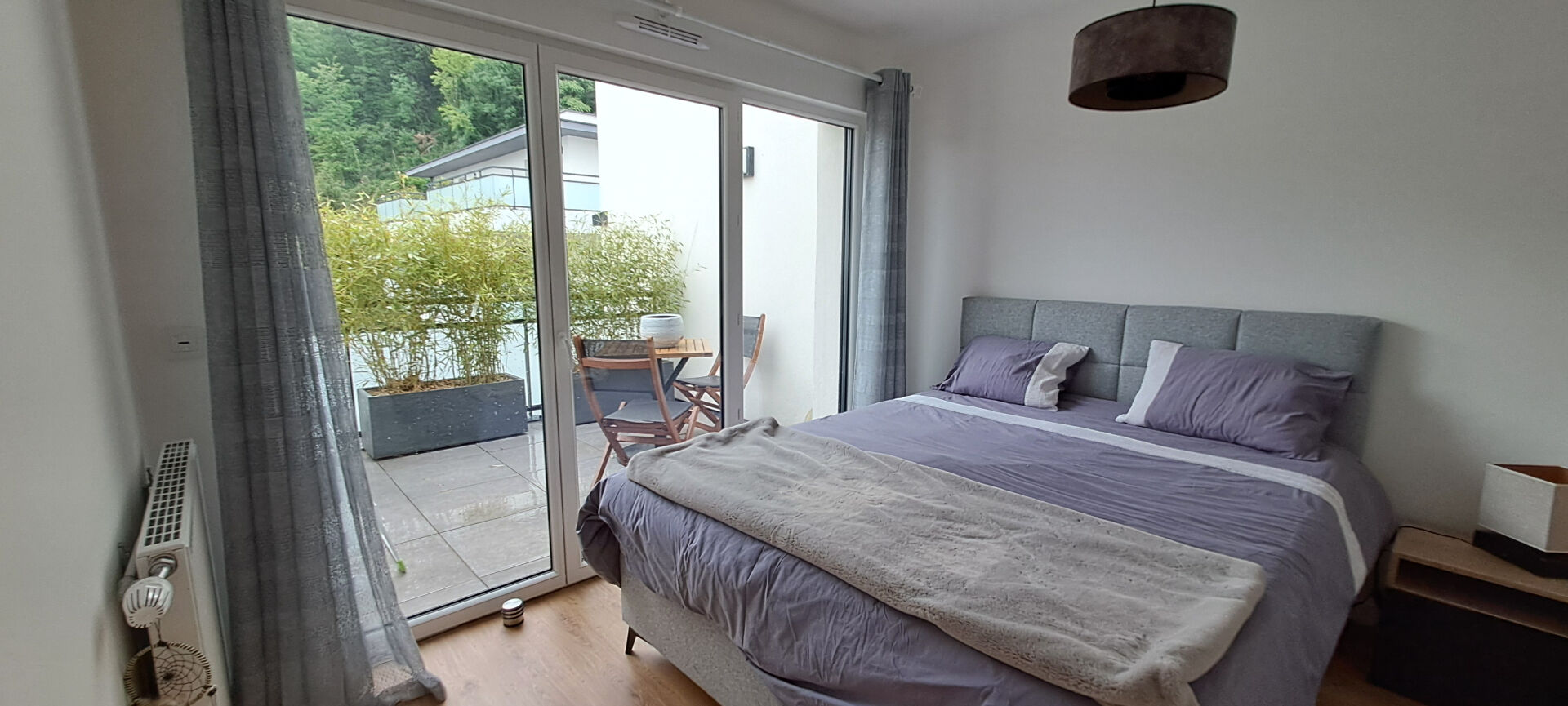 Dans une résidence neuve de grande qualité située au centre de Voglans, grand T3 de 78m² situé en dernier étage avec vue lac.