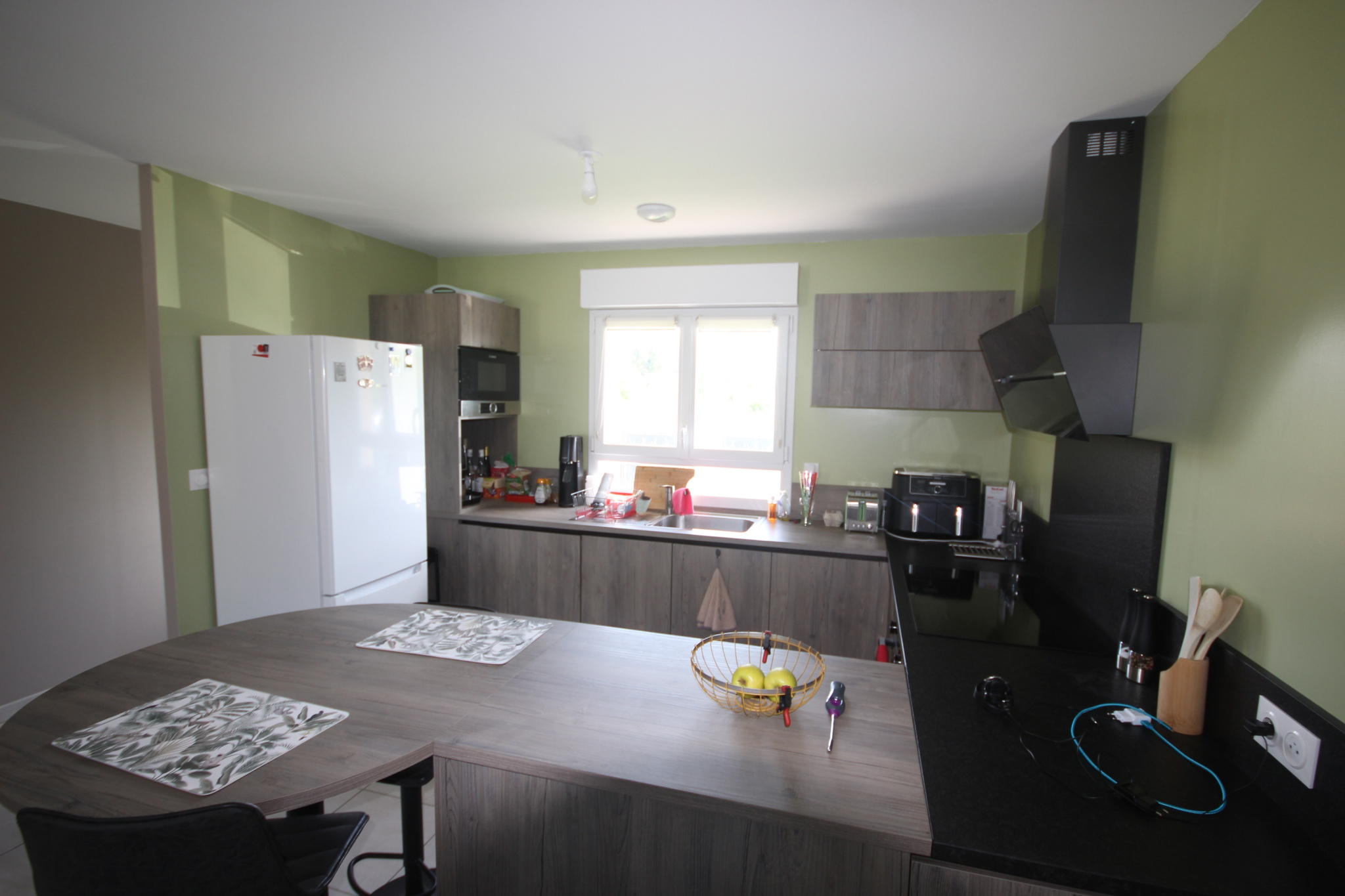 Elle comprend un séjour ouvert sur une cuisine américaine équipée, 3 chambres, une salle de douche, un wc, une buanderie et un garage.