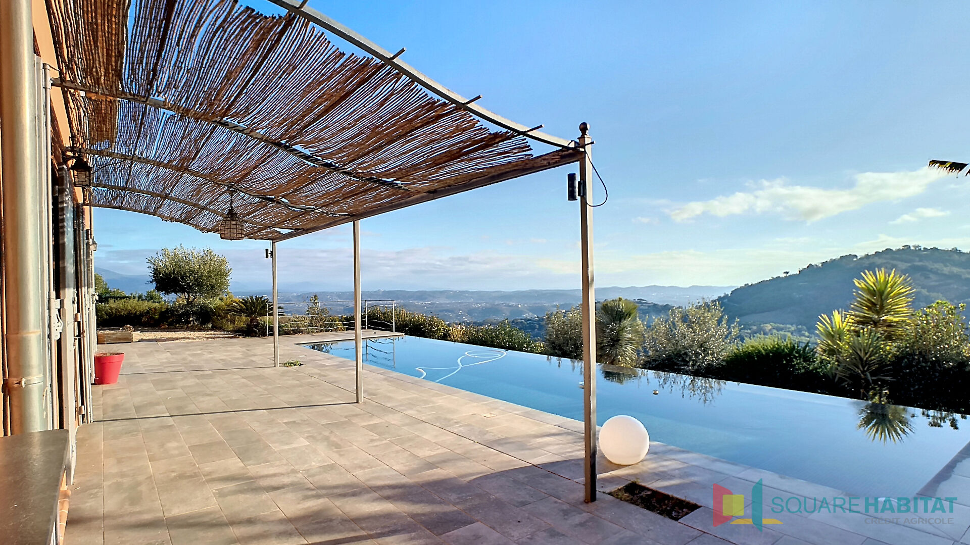 Sur les hauteurs, pour amoureux du calme et de verdure, magnifique villa individuelle de 210 m², sur un terrain de 1024 m², offrant une superbe vue sur les massifs de mimosas, jusqu'à la mer. La villa est construite sur 2 niveaux et elle se compose comme suit :