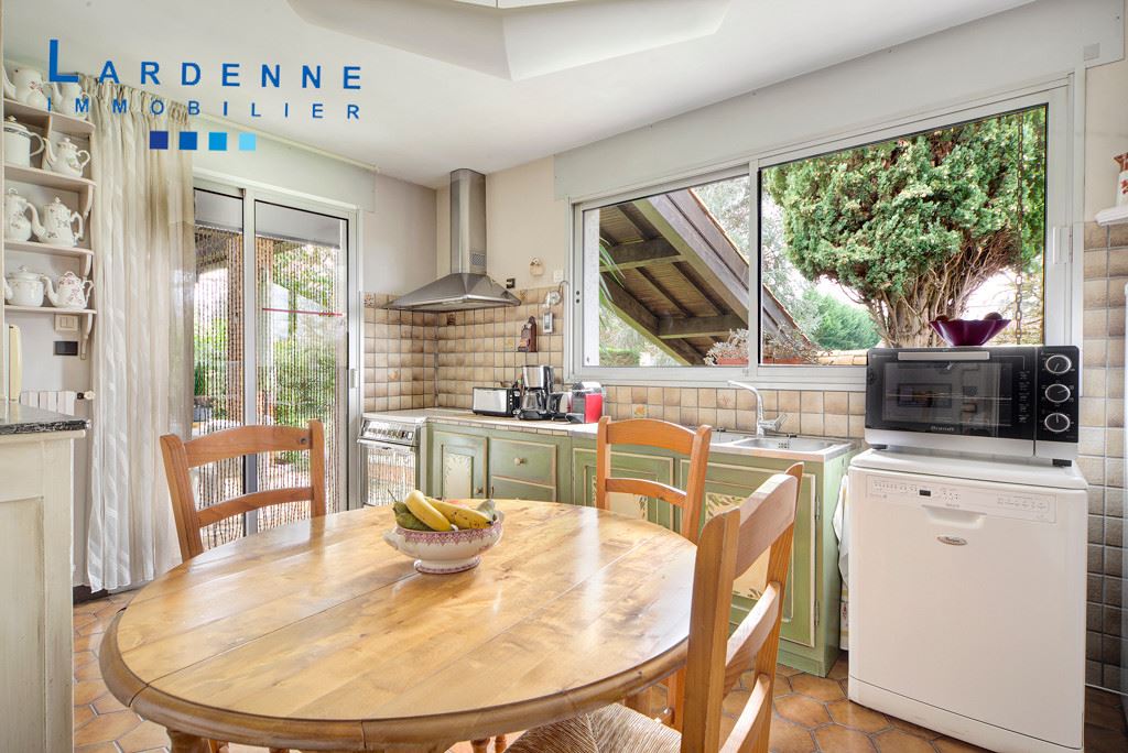 Tournefeuille côté Lardenne, au cœur d’un environnement résidentiel recherché, sur un terrain plat et arboré de 1700?m², belle maison familiale d’environ 180?m² habitables, vaste pièce de vie lumineuse avec cheminée, une cuisine indépendante ouvrant sur une terrasse, ainsi que 5 chambres, dont 3 en rez-de-chaussée, incluant une suite parentale avec salle d’eau.