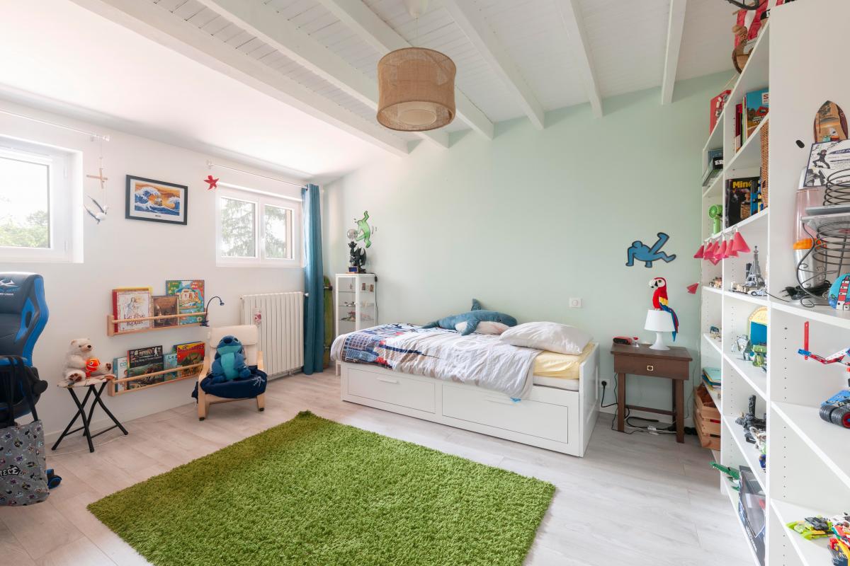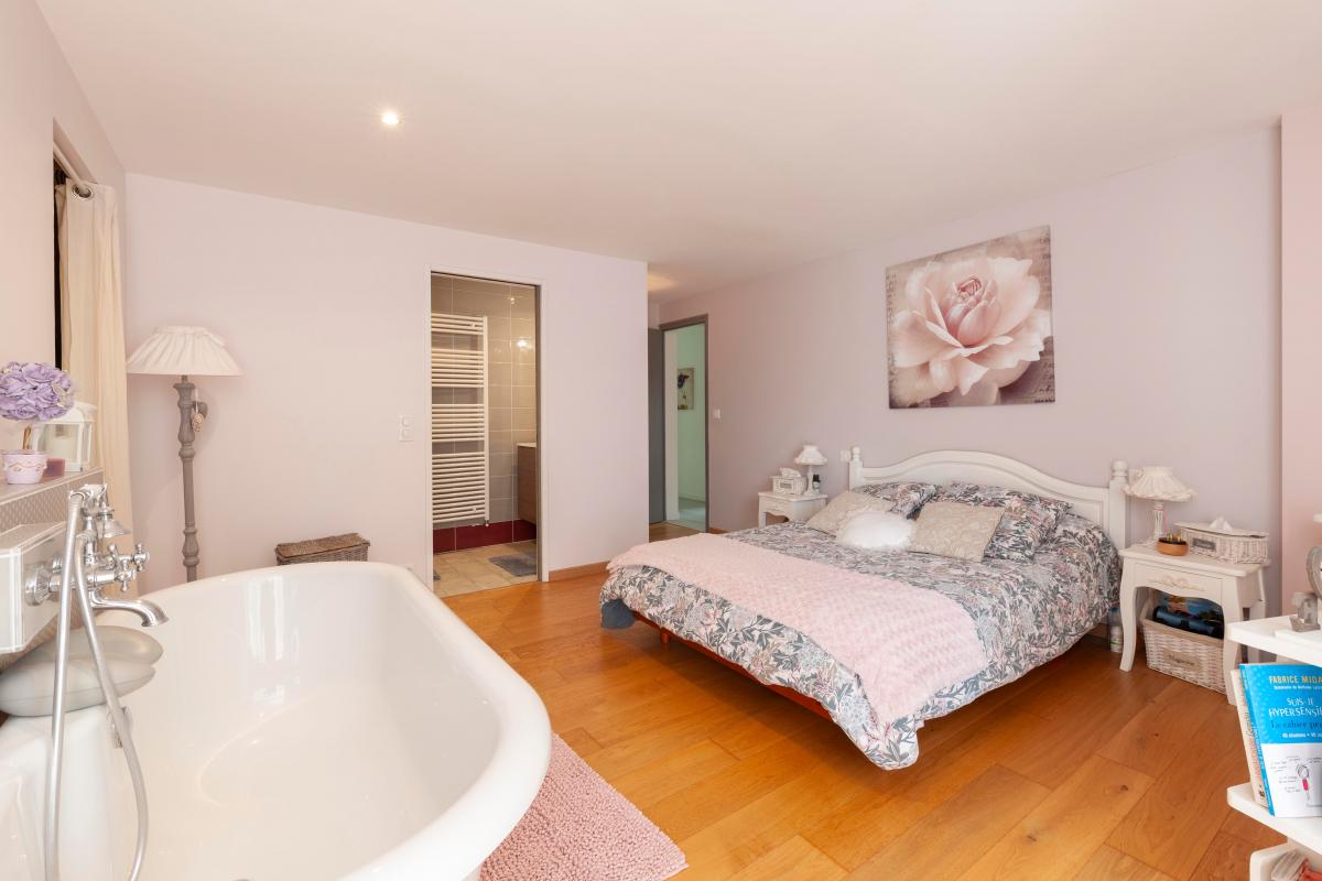 - à l'étage : 4 chambres dont une suite parentale avec salle de bain, grand dressing & balcon, une salle d'eau indépendante, un wc et des espaces de rangements.