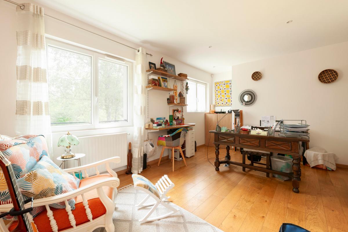 - au rez-de-chaussée : une entrée avec placards, un vaste espace de vie de 55m² donnant sur une terrasse couverte avec cuisine équipée et un salon/séjour & son poêle à bois, un grand bureau de 20m², une chambre ou salle de jeux, une salle d'eau avec wc.