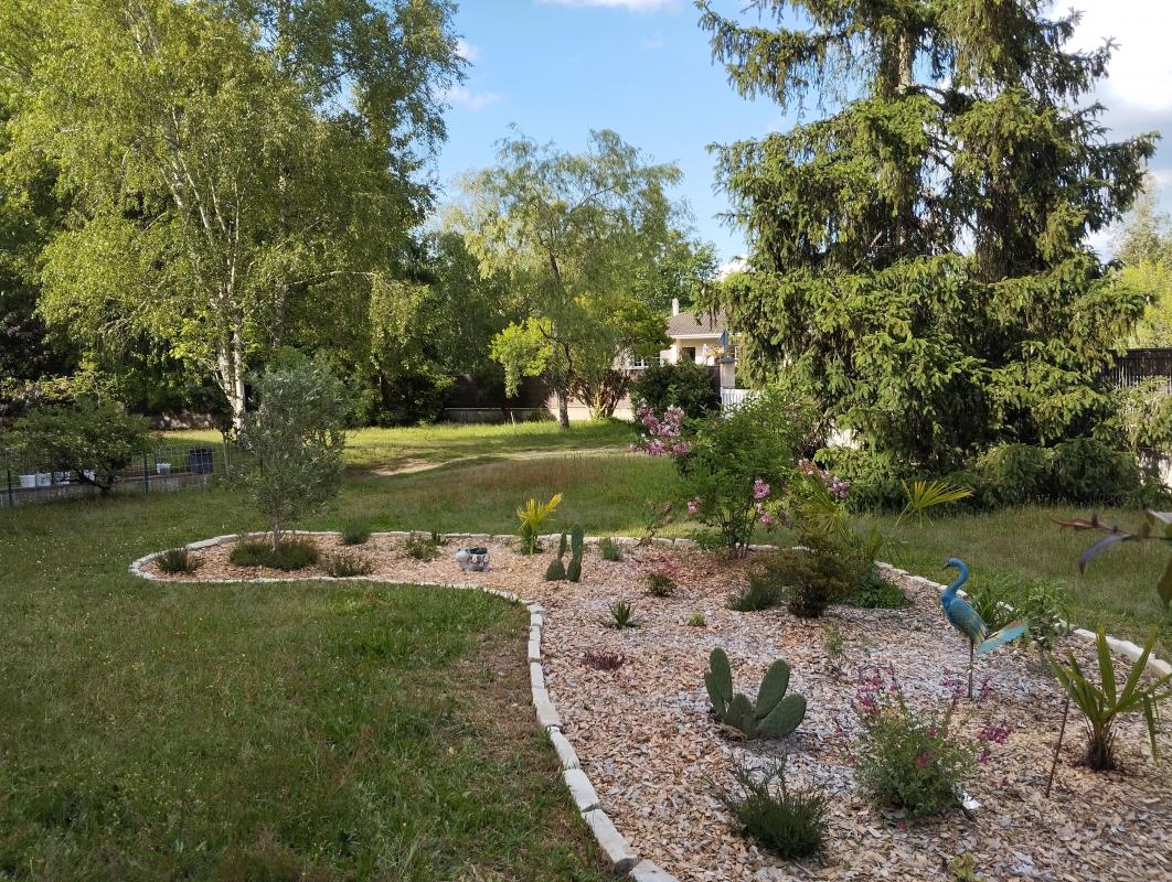 A l'extérieur, un vaste terrain de 2914m² avec un joli jardin d'agrément, une terrasse couverte et un parc boisé vous permettra de profiter pleinement de l'environnement et du calme de ce bien. La maison est équipée d'un portail électrique.