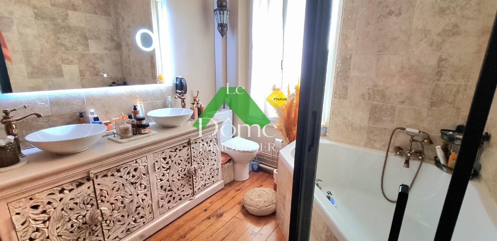 Entièrement rénovée avec des matériaux de qualité et décorée avec soin, elle vous séduira dès l?entrée par son vaste hall menant à une cave réaménagée en salle de sport. Vous apprécierez également sa cuisine ouverte, aménagée et équipée, ainsi que son double séjour lumineux agrémenté d?un poêle à granulés pour vos soirées d'hiver.