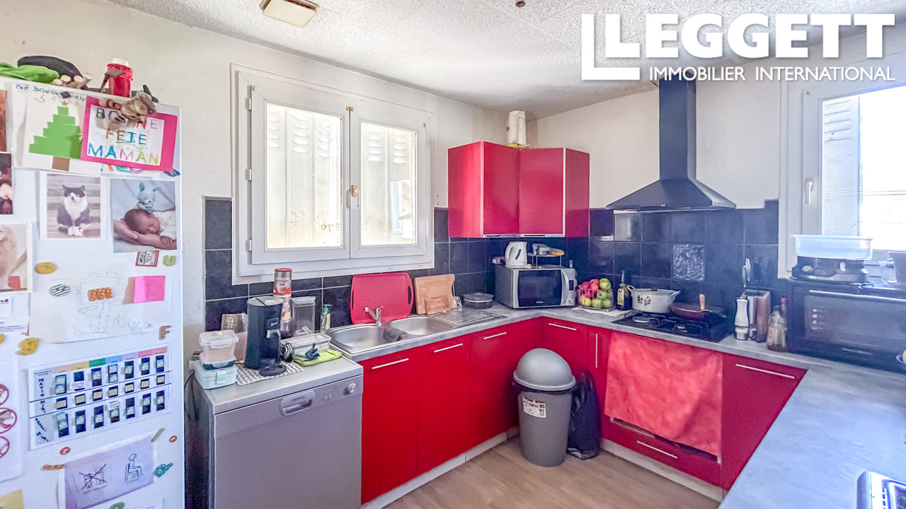 - A l'étage : 1 cuisine équipée, 1 salon/salle à manger, 1 salle de bain, 1 WC, 3 chambres et 1 terrasse.