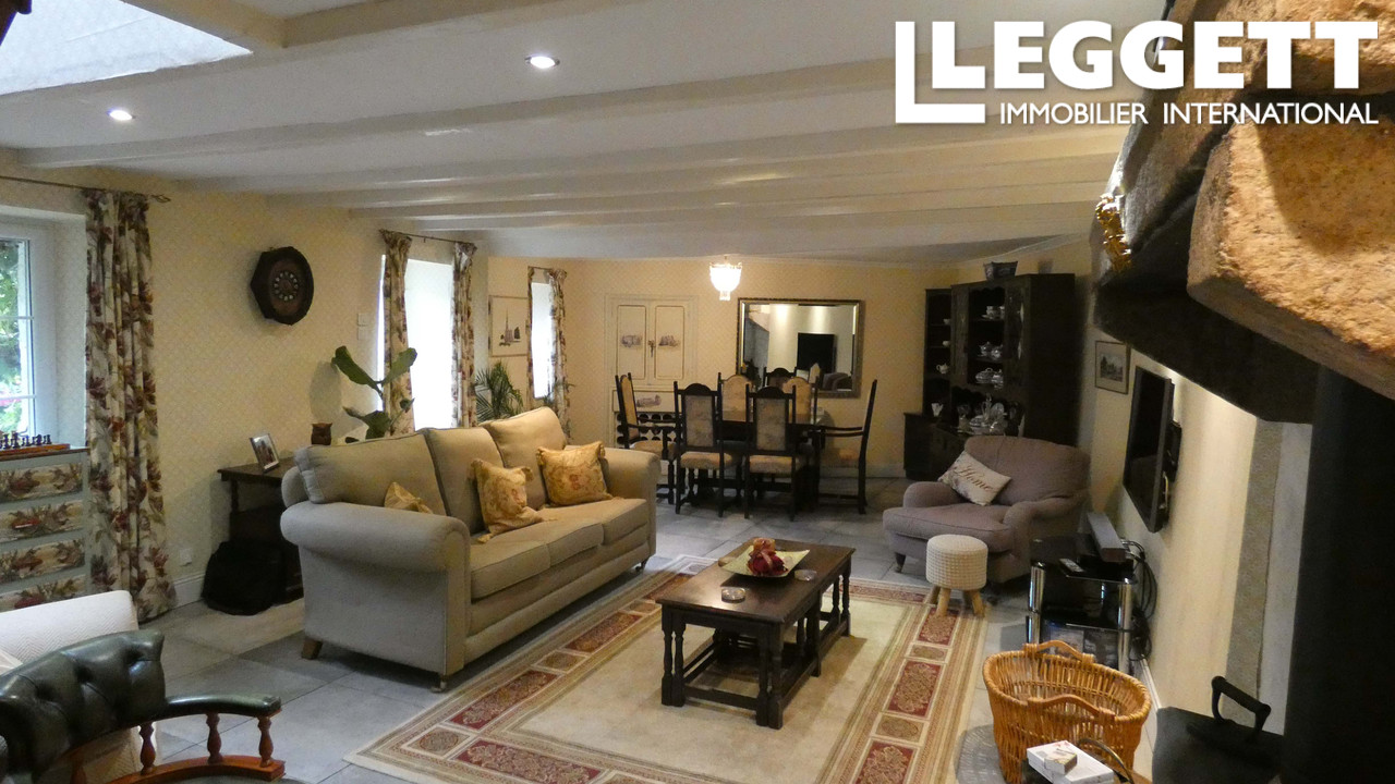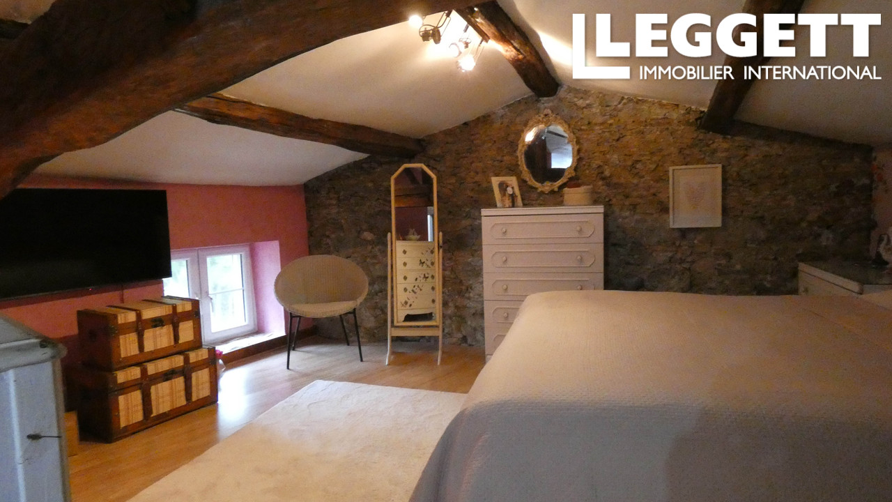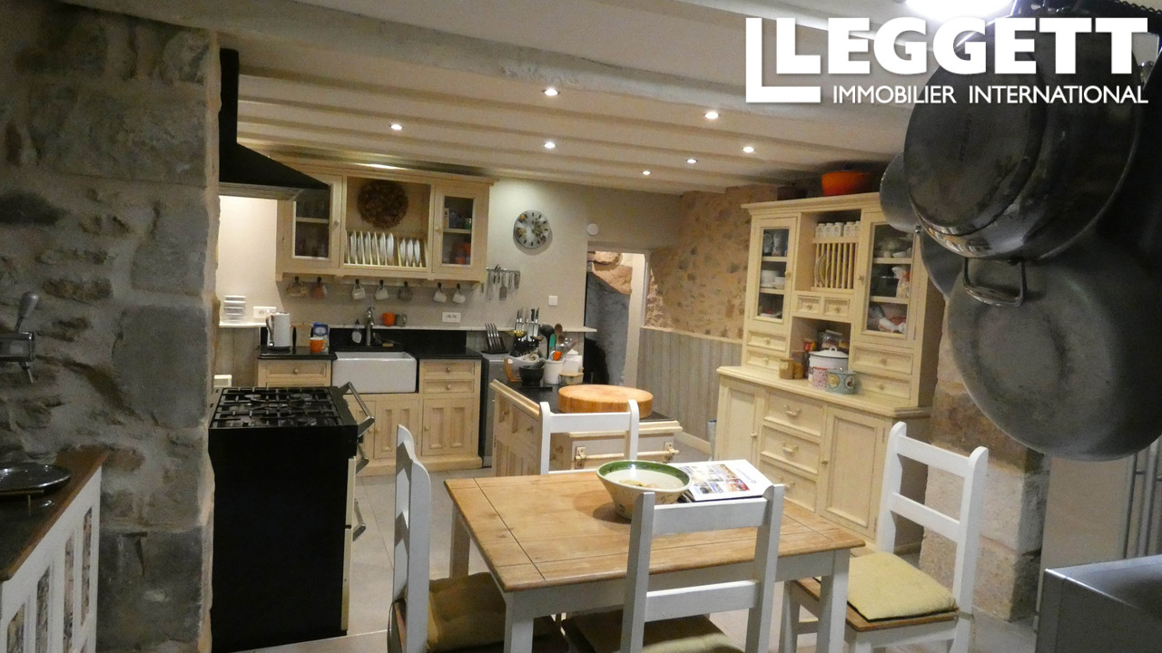 A37175DOW79 - Leggett est ravi de présenter cette charmante longère, alliant caractère et élégance. Avec ses pierres apparentes, sa cheminée en granit et ses poutres sombres, elle offre une atmosphère rustique et sophistiquée. L'intérieur, décoré avec goût, met en valeur des éléments shabby chic et des détails uniques, comme le papier peint vintage de livres dans le hall. La maison comprend trois chambres spacieuses, dont une suite parentale avec salle de bains privative. La cuisine, avec coin repas informel, et le salon, plus formel, offrent un cadre agréable. En bas, une entrée séparée permet d'aménager un espace privé, incluant un petit salon, une cabine de douche moderne, un WC et une arrière-cuisine. À l'étage, une chambre et un dressing offrent la possibilité d'un logement séparé ou d'une suite pour invités.