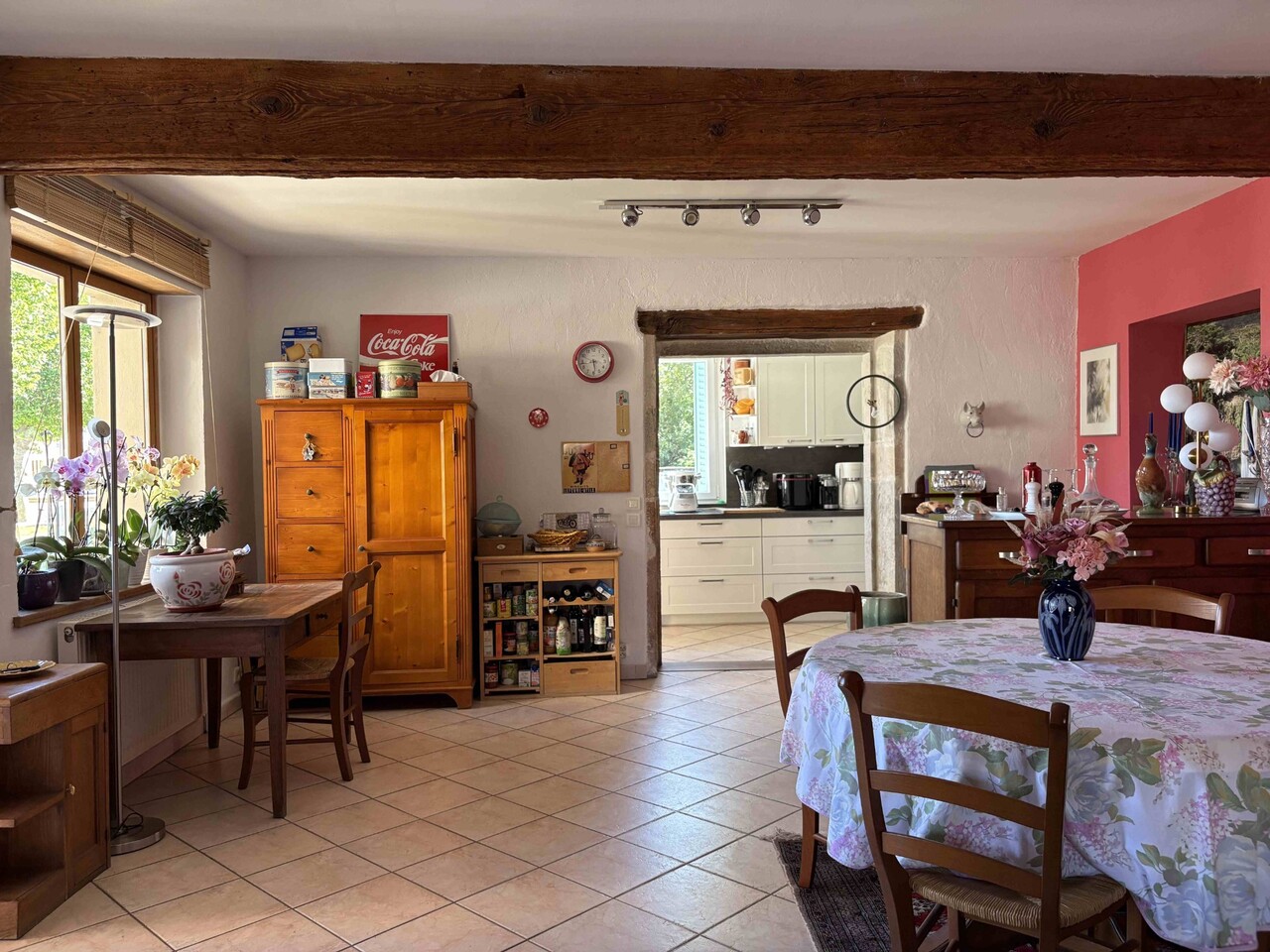 A VENDRE, MACON OUEST, 5 MN gare TGV, dans un village viticole, charmante et chaleureuse maison de caractère de 220 m² habitables avec dépendances, cour et jardin, au calme dans un environnement paisible et sans nuisances. Elle propose au premier étage avec escalier pierre et galerie maconnaise, une pièce de vie comprenant un séjour/salon avec poêle à bois, une salle à manger lumineuse et une cuisine équipée. Une aile indépendante avec trois belles chambres complétées par une salle d’eau avec toilettes et une buanderie. Au dessus, desservi par un bel escalier en bois, une suite parentale avec salle de bains et toilettes séparés, accessible depuis une mezzanine pouvant servir de bureau ou d’espace loisirs. Au rez-de-chaussée, vous profiterez d’un espace détente avec jacuzzi intérieur et d'une salle d'eau avec toilettes donnant directement sur le jardin grâce à une grande baie vitrée. Grande pièce de réception ou cuisine d’été de 40 m². Le tout est complété par de nombreuses dépendances : cave, chaufferie et de grandes dépendances fonctionnelles pouvant convenir à un artisan ou viticulteur. Possibilité d'extension de l'habitation dans les combles d'environ 65 m² avec entrée indépendante. La maison est équipée d'un chauffage central au gaz de ville associé au poêle à bois performant ainsi qu'un adoucisseur d'eau. Les huisseries sont en double vitrage PVC principalement, l'isolation est complète. Les toitures sont en bon état (une partie sous garantie décennale) avec film sous-toiture de protection. L'assainissement est relié au tout à l'égout. Les extérieurs sont agréables, cour joliment arborée sur l'avant avec portail en fer forgé. Jardin clos avec terrasse et four à pain sur l'arrière, espace potager avec puits et derrière les garages, un espace de terrain restant à aménager selon vos projets. L'ensemble au cœur du village, proche de toutes les commodités (écoles, commerces, transports scolaires). Idéalement située, sur la route touristique des vins et du site préhistorique de la roche de Solutré, cette maison conviendrait aussi à un projet de chambres d'hôtes.
