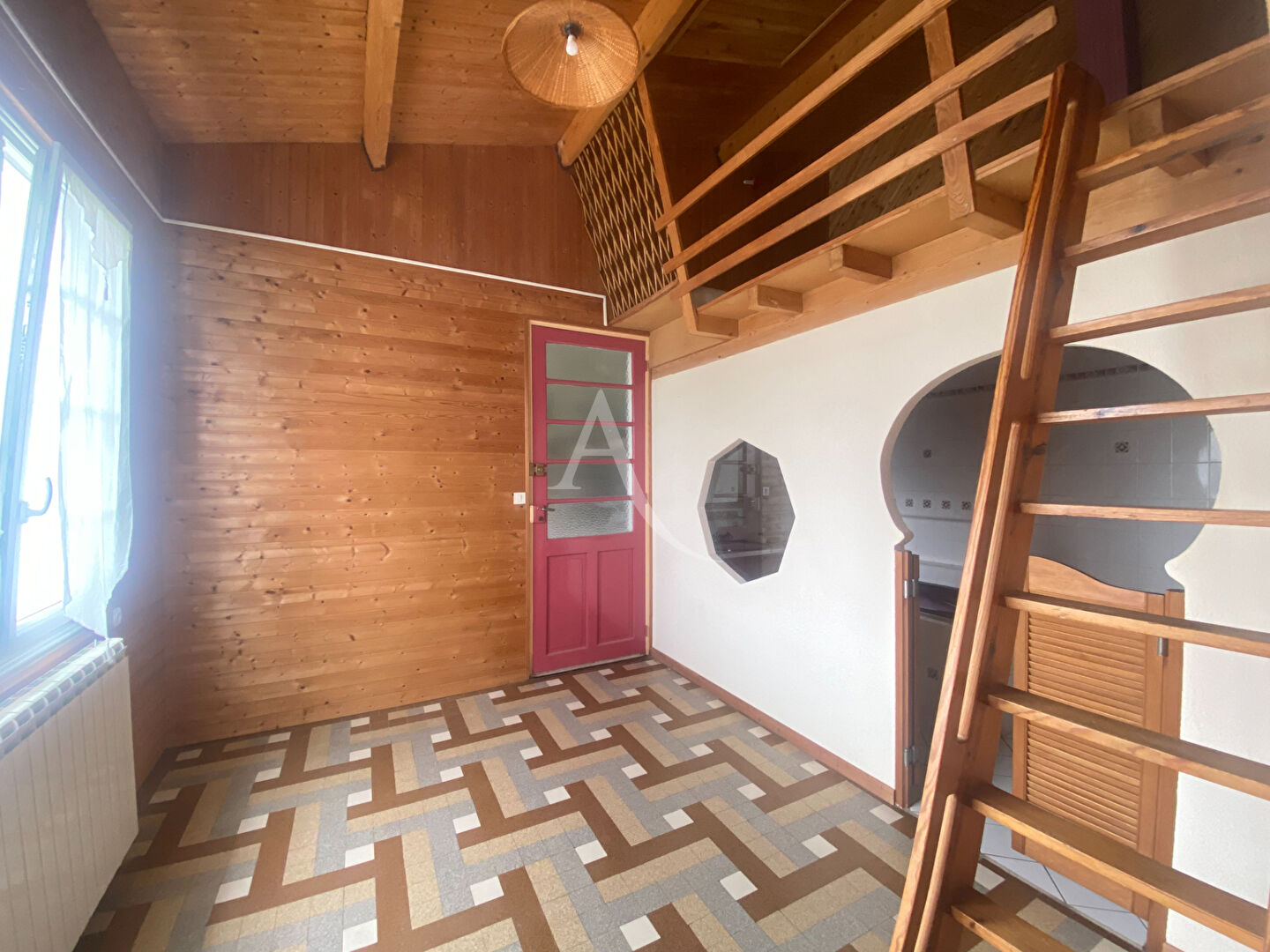 À l'étage, un palier/bureau avec balcon dessert deux chambres, dont une avec pièce attenante à aménager selon vos envies , ainsi qu'une salle d'eau.