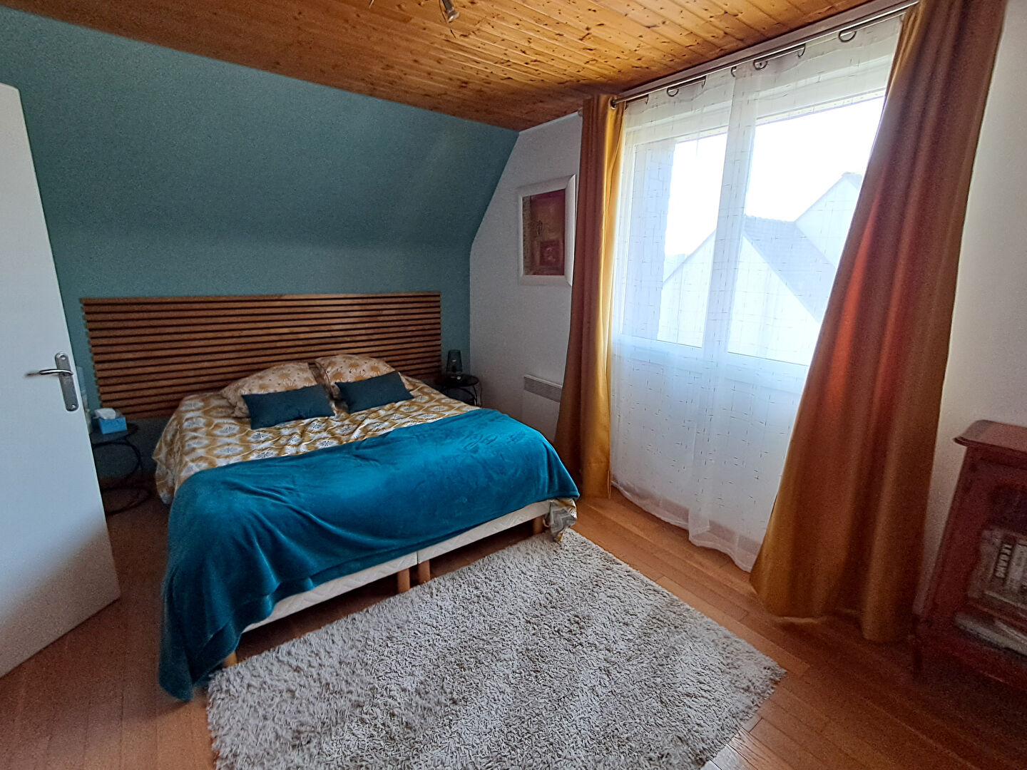 Elle se compose d'un Séjour chaleureux avec de grandes ouvertures donnant sur le jardin et la terrasse , une cuisine ouverte aménagée et équipée. 4 chambres dont une en rez de chaussée, une salle d'eau, un grenier aménageable. Un garage et possibilité de stationner un camping-car ou un bateau. Un abris de jardin et une cave.