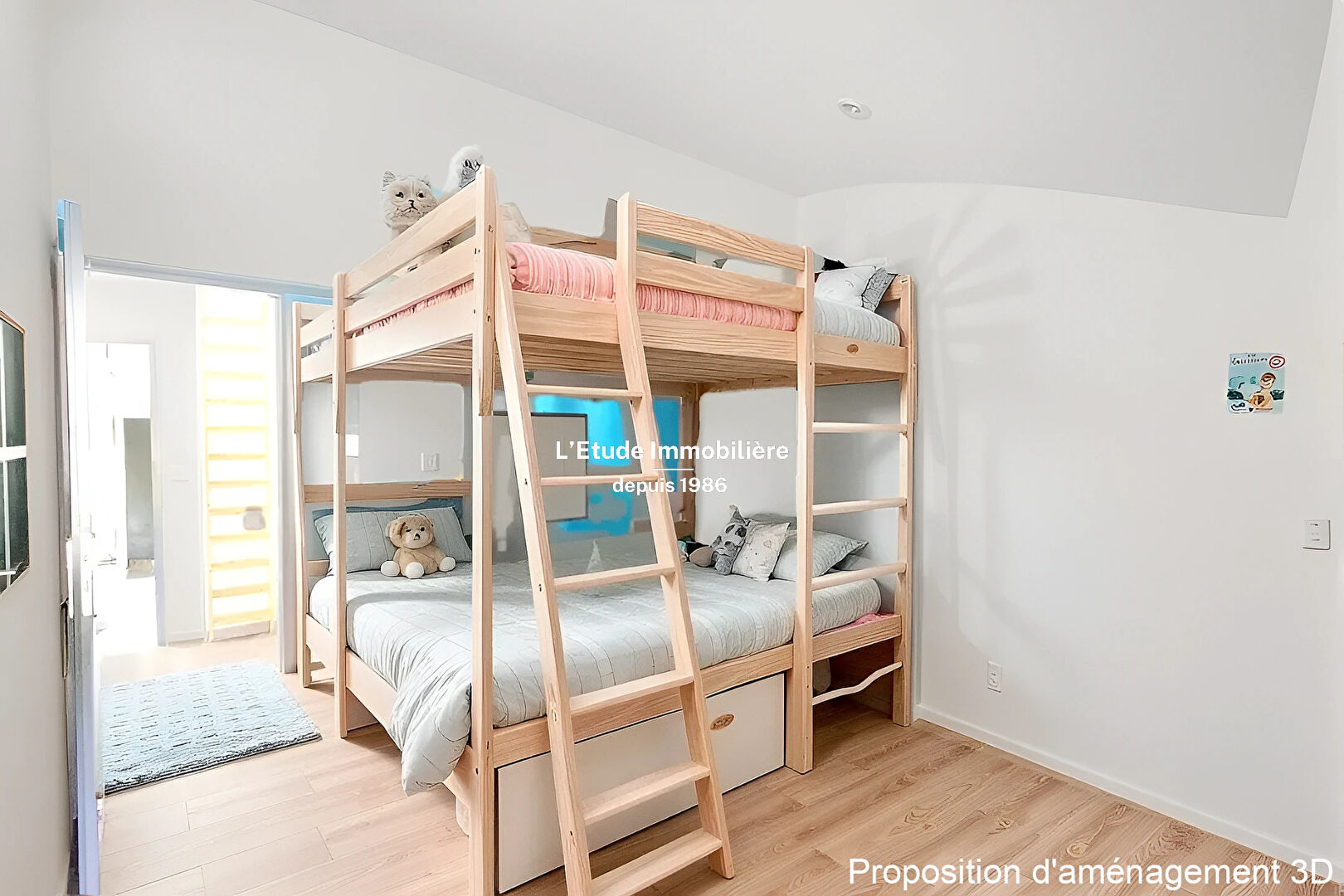 Venez vous installer sans travaux dans cette maison familiale de 122 m² au sol (111,76m² Carrez) et 50m² de jardins (35 m² au Sud-Est et 15m² au Nord-Est). La pièce de vie traversante de 45m² avec sa cuisine sur-mesure profite de larges baies vitrées avec des possibilités d'agrandissement en l'ouvrant sur la chambre de plain-pied. A l'étage, trois grandes chambres aux hauteurs sous plafond importantes (entre 1m70 et 3m) satisferont vos besoins et ceux de vos grands enfants. Votre quotidien sera facilité par les deux salles d'eau, les deux WC, la buanderie et le deuxième salon TV (HSP 3m60) ou bureau situé à l'étage. 221 Euro de charges de copropriété annuelles.