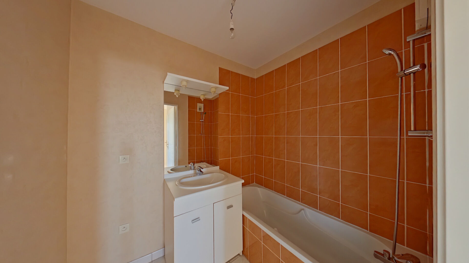 Celui ci vous offre une entrée donnant sur une cuisine séparée aménagée et équipée, la belle pièce de vie lumineuse exposée Sud Ouest vous donnera accès à une terrasse de d'environ 9m².