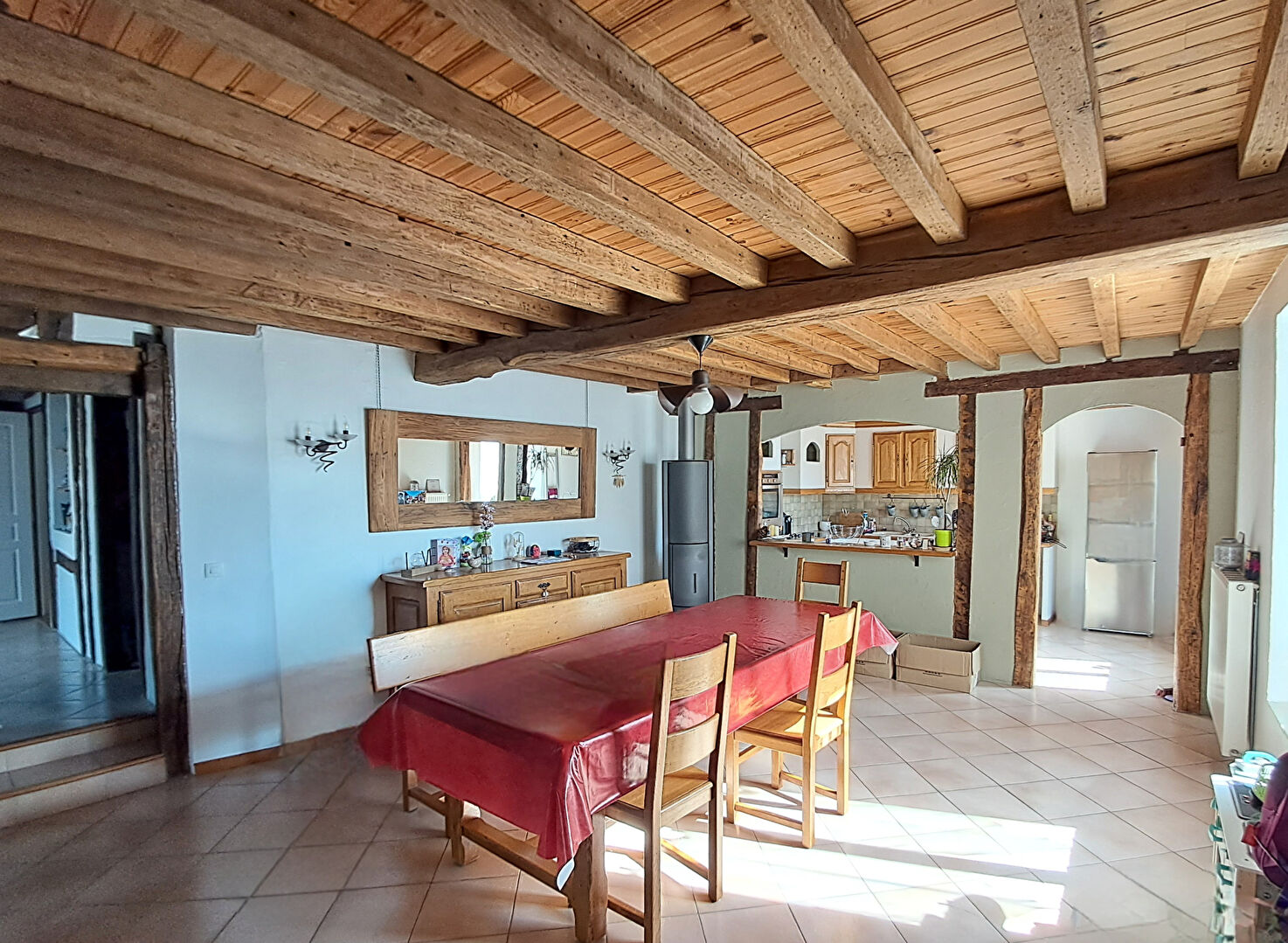 Charme de l'ancien garanti : poutres apparentes, parquets en chêne massif, murs en pierre, sans oublier une belle cave voûtée typique, le tout offrant une ambiance chaleureuse et authentique.