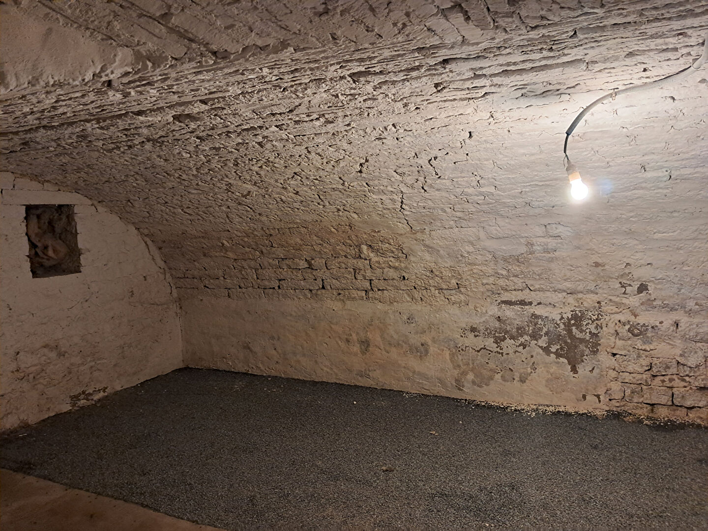 Charme de l'ancien garanti : poutres apparentes, parquets en chêne massif, murs en pierre, sans oublier une belle cave voûtée typique, le tout offrant une ambiance chaleureuse et authentique.
