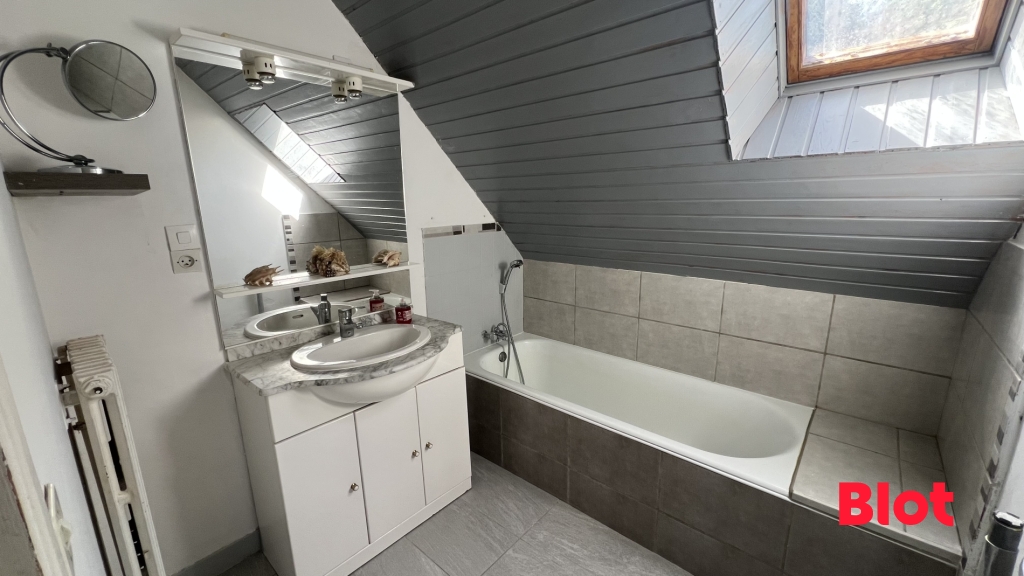 A l'étage, vous trouverez un dégagement desservant 3 belles chambres, une salle de bains et un WC.
