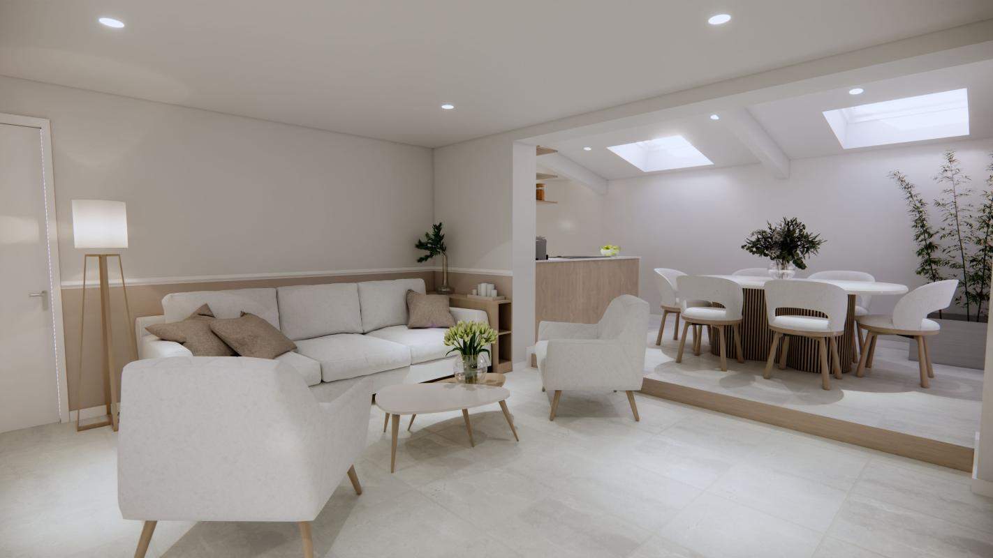 Habitable en l'état, un projet de rénovation a été chiffré afin d'optimiser pleinement ses surfaces. Le projet n'est pas contractuel, modulable selon vos besoins et permet d'agrandir significativement la surface habitable de la pièce de vie actuelle.