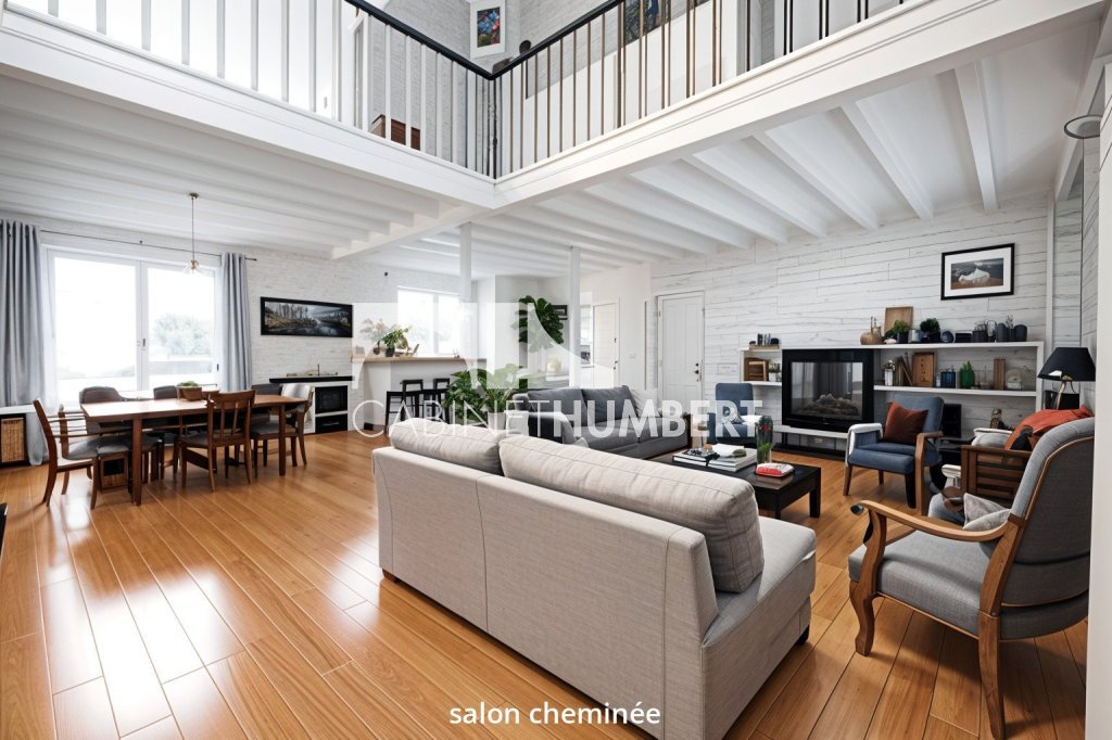 Au rez-de-chaussée, la maison dispose de 4 chambres dont une avec une douche, une salle de bain (douche et baignoire), un wc et l'accès au sous-sol. A l'étage, une grande mezzanine faisant office de salon TV et d'espace bureau, et une grande chambre avec wc et douche.