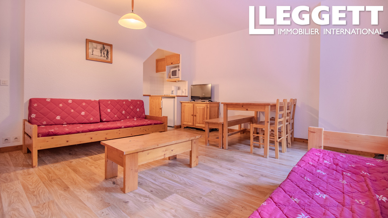 Vendu meublé, il comprend une place de parking privée, un casier à ski, une entrée avec placard et machine à laver, une salle de bain, des WC séparés, une chambre double, une pièce de vie avec salon, salle à manger et kitchenette, ainsi qu'un grand balcon.